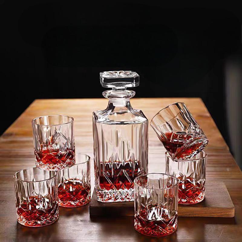 ウイスキーデカンタ6点セットクリスタル風デキャンタグラス付きノン鉛バーボンスコッチリキュールにも記念日誕生日ギフトに自宅バー気分が高まる