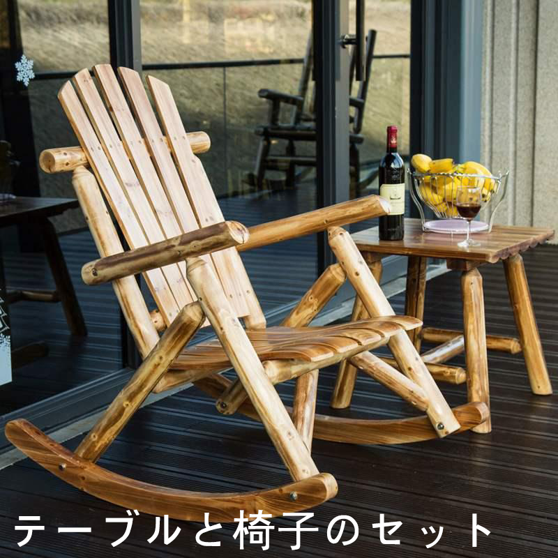 無垢材ロッキングチェア 屋外ラウンジチェア 背もたれ付き バルコニー 中庭 ガーデン 耐食性 木製チェアでくつろぎ時間を演出