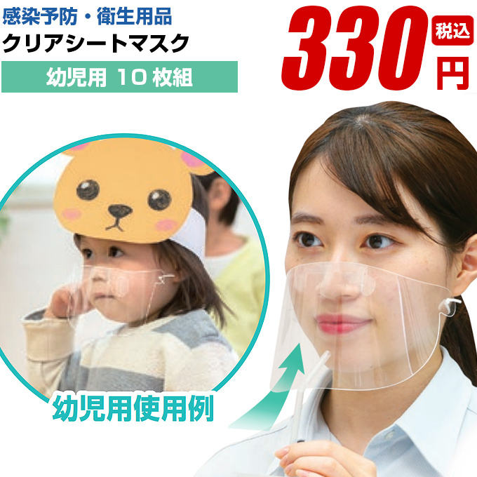 フェイスシールド フェイスガード 透明マスク クリアマスク【クリアシートマスク 幼児用 10枚】高品質 簡単 飛沫防止 コロナ対策 即日発送