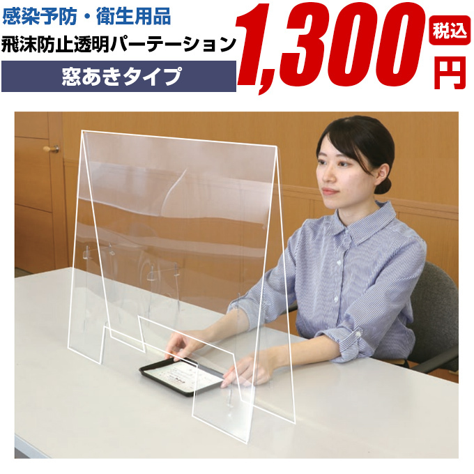 パーテーション パーティション 衝立 間仕切り【飛沫防止透明パーテーション 大 1mm 窓あきタイプ】PET樹脂 コロナウイルス対策 簡単組み立て 飛沫防止
