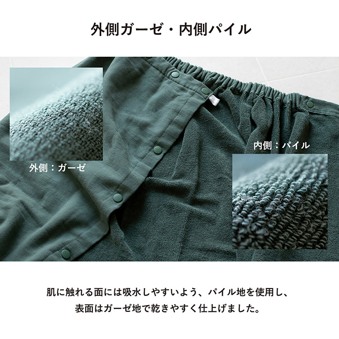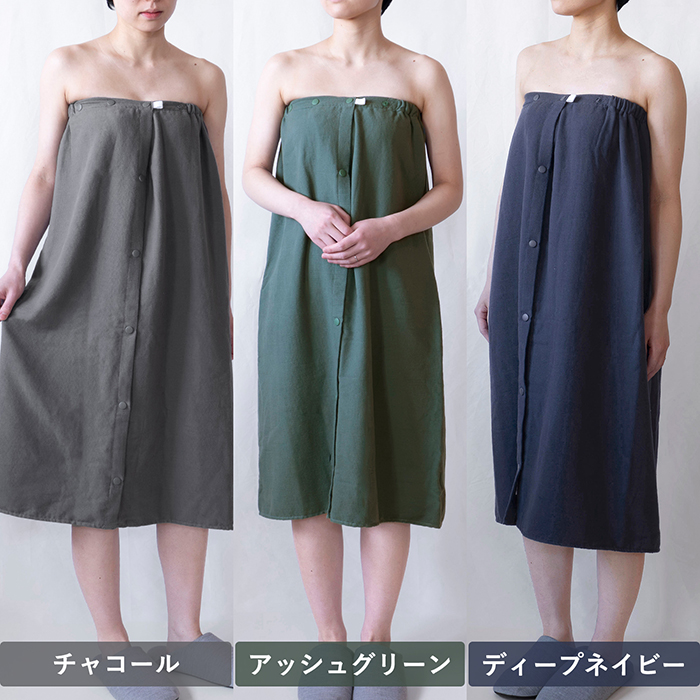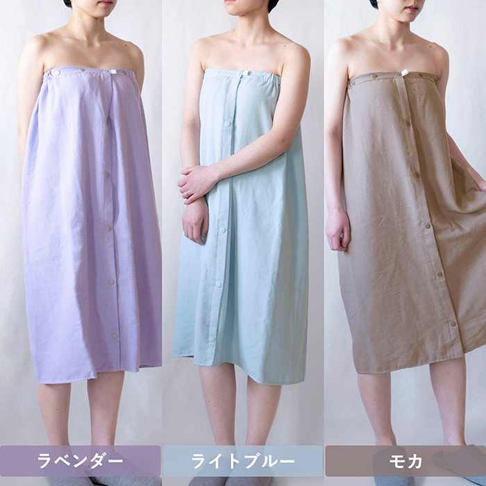 ラップタオル COLOR WRAP TOWEL ガーゼ 巻きタオル 綿100% 着丈約85cm ボタン付き プールタオル 着るタオル お風呂上り 速乾 吸水 ガーゼタオル 無地 送料無料