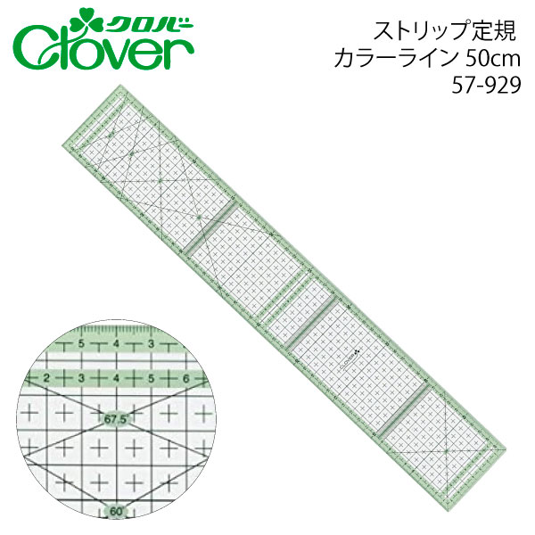 また、定規端の目盛の背景「カラーライン」は、縫いしろ幅にあわせた7.5mmなので、縫いしろをとる作業も楽にできます。