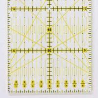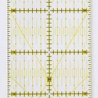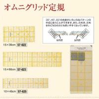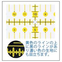 本場アメリカのキルターも愛用するオムニグリット定規。タテ・ヨコの目盛が直角で合わせやすく、30度・45度・60度の角度が測れる。