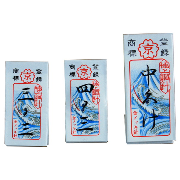 和裁用の縫い針です。読み方は「三ノ二」で「さんのに」、「四ノ二」で「しのに」や「よんのに」と読みます。