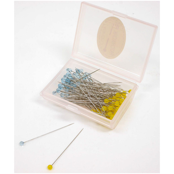 シャープな針先で布通りが抜群。細くて丈夫な待針。頭はアイロンの熱にも安心のガラス製です。