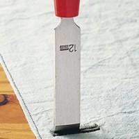 ボタンホールステッチをした後、垂直にまっすぐ刃をあて、ゆするようにして切込みを入れてボタンホールをつくります。
