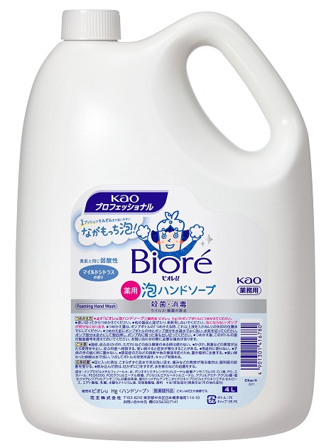 ビオレu泡ハンドソープ 業務用 4L〔医薬部外品〕|弱酸性&ながもっち泡でやさしく洗浄!ウイルス・細菌を除去/香りが残りにくいマイルドシトラスの香り