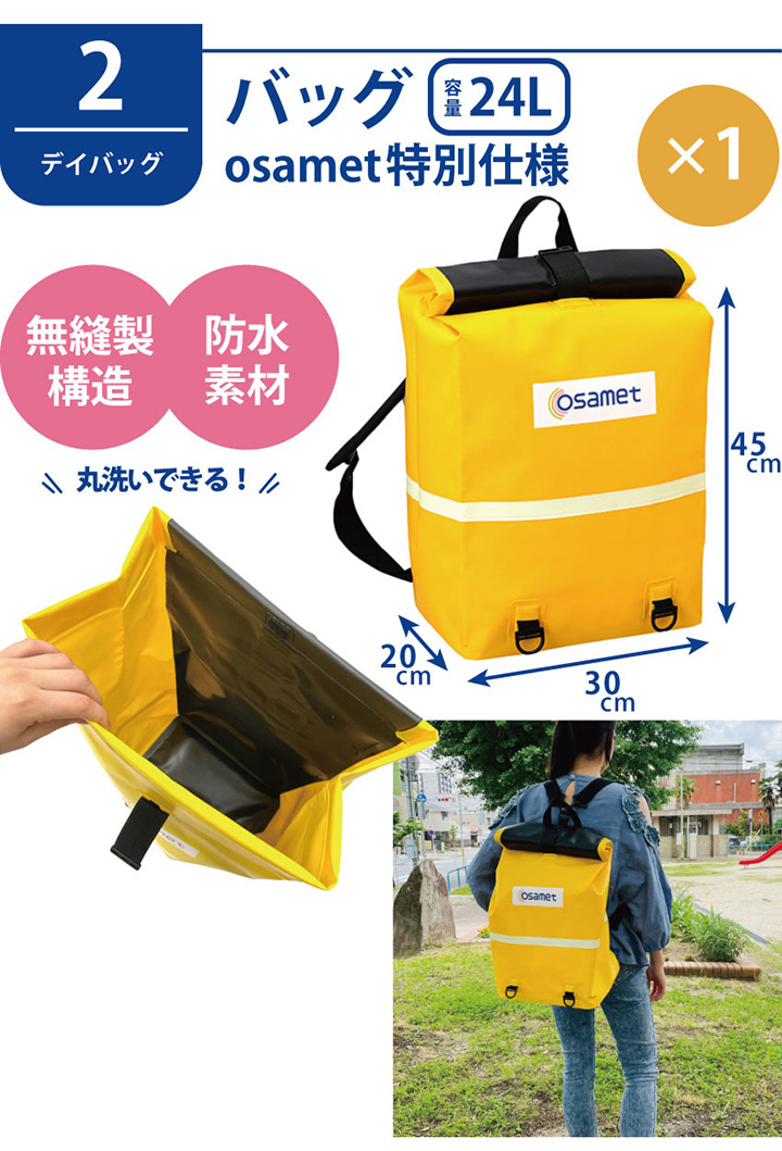 スタンダード 防水 防災セット 1人用 リュック オサメット 非常用持ち出し袋 男性用 女性用 保存食 備蓄 折り畳み ヘルメット 基本 ATR
