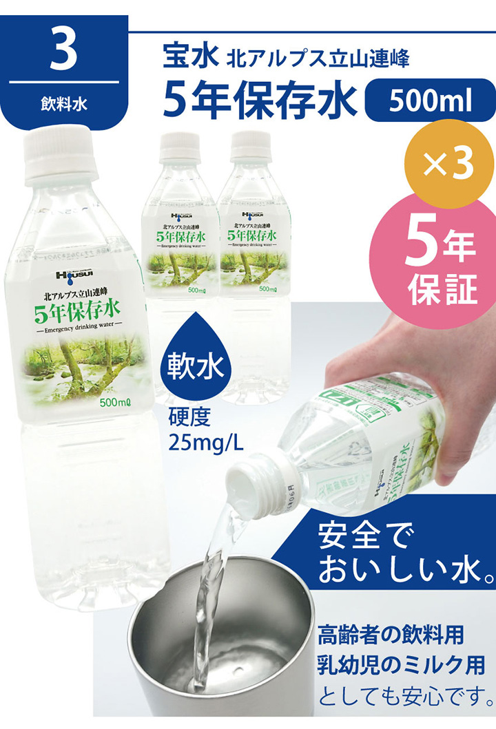 □ 5年保存水500ml x3