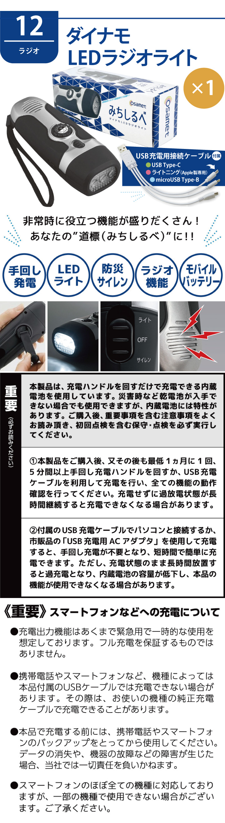 □ 多機能ダイナモラジオライト x1