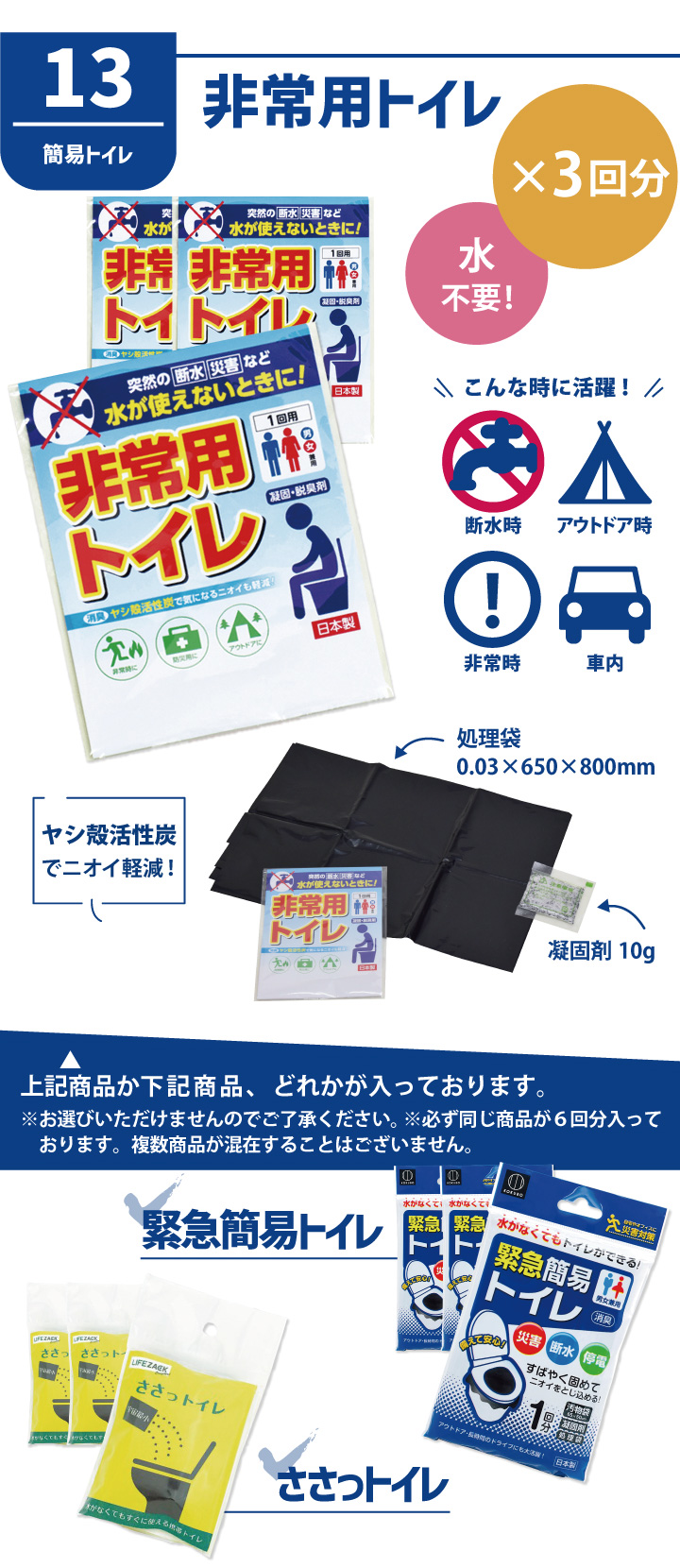 □ 緊急簡易トイレ x3回分