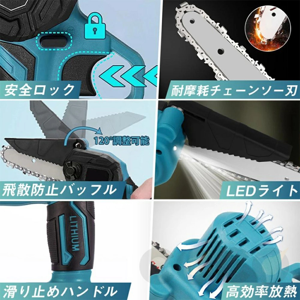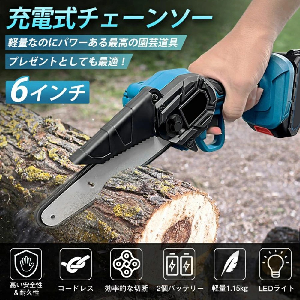 電気のこぎりの適用範囲が広く、果樹園の側枝切断、家庭用薪、竹切り、苗木切り、都市緑化、DIY木製品プロジェクトなどに広く応用されている。高い枝を切断したり、花園の木を切断したりするなど、家庭で使用するのにも適しています。