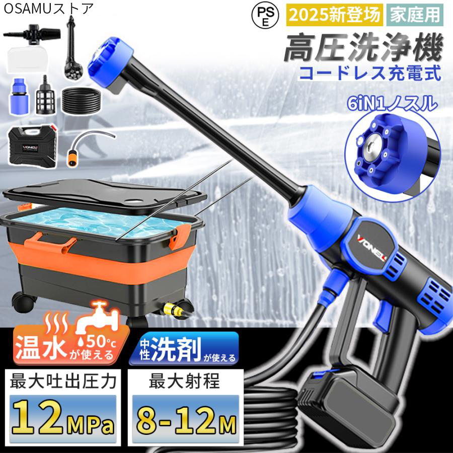 【洗車や大掃除に便利&調節可能】高圧洗浄機は高圧ポンプと高効率の1200W純銅ブラシレスモーターを搭載し、水道水の40倍の圧力まで安定した強力な水圧を提供し、高圧噴射による頑固な汚れを簡単に除去します。他社製品に比べ、洗浄機は圧力が20%高いため、洗車時間が10分以上短縮され、効率的な洗浄が可能です。高圧洗浄機は一目でわかるディスプレイ画面搭載、画面の表示により、モード調整や電池残電確認ができます。ハイパワーが実現され、しかも省エネ!低騒音デザインの高圧洗浄機で、水圧を調節できる家庭用モデルなので洗車だけじゃなくさまざまな汚れをラクに掃除!2段階水?モードがあり、射程は最大12メートル、強力な水圧によって、長年蓄積したガンコな汚れを落とすことにもできます。 弾力性があるので洗浄作業中も楽々給水ホースに専用フィルターを利用し、ゴミなど不純物の混入を防ぎます。
