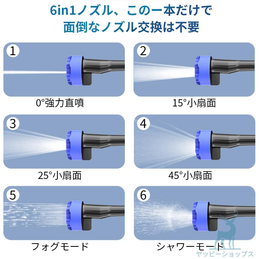 【6-in-1多機能ノズル&泡のボトルノズル】高圧洗浄機はオプションパーツは豊富で、6-in-1多機能ノズルは、0°、15°、25°、40°、拡散モード噴射、シャワーモード噴射6つの異なる噴射モードを切り替えることができ、様々な洗浄ニーズに対応します。 泡のボトルノズルの設計により、車内清掃がより効率的になります。付属のボトルに洗剤を入れるだけで、濃厚な泡が立ち、プロ級の清掃が可能です。雨どいなどの手の届きにくい場所の洗浄に適しています。高圧洗浄機は洗車や庭、屋外、階段、網戸・窓ガラス、ブロック塀、外壁、駐車場、玄関まわり、自転車・バイク、ベランダ、高い場所、家まわり、浴室、年末大掃除、キャンプ用品の清掃やBBQの片付けにも大活躍。