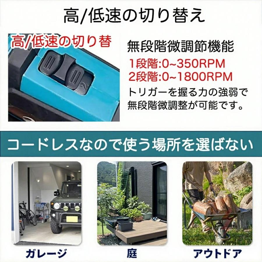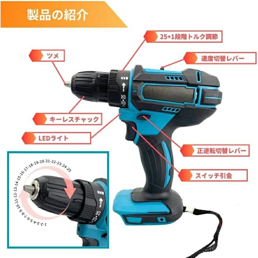 【 25段階トルク調整 & 高/低速の切り替】 クラッチ機能で25段階のトルク調節可能、作業ニーズに合わせて自由に調節できます。 電動ドリルの回転スピードは2段階(0~350RPM/0~1800RPM)が切り替え、トリガーを握る力の強弱で無段階微調整が可能です。スピード調節とトルク調節機能で幅広い材質に傷をつけず、きれいな組み立てができる。