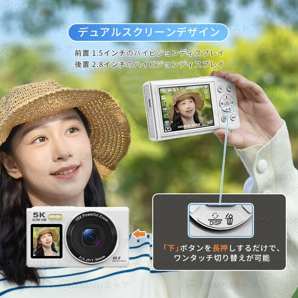 前面1.5インチ/背面2.8インチディスプレイ搭載。