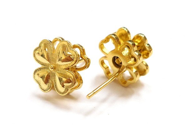 BiBi クローバー 型 回転式 土台 ピアス 1セット 2個入り ゴールド