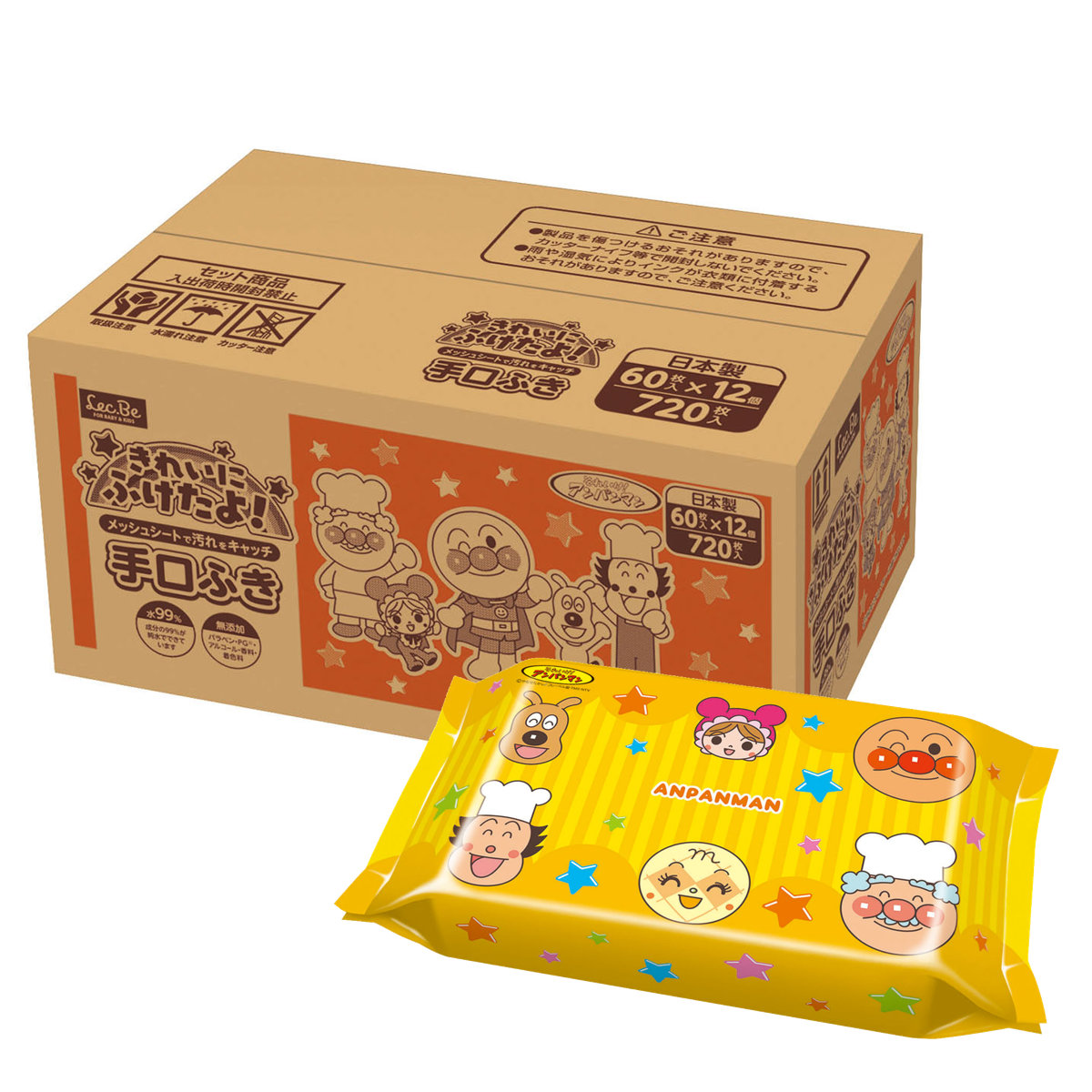 レック アンパンマン 手口ふき 60枚×12個(1ケース) A00329 [ウェットティシュ ウェットシート ウェットティッシュ LEC 手 口 ケース売り 箱][送料無料][itm]