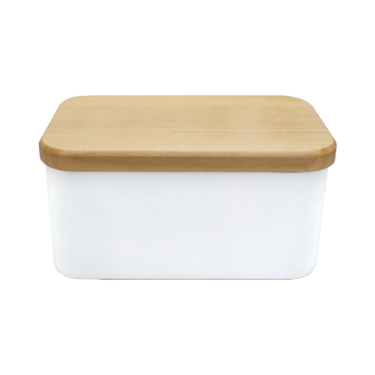 においうつりがなく、冷却性の高いホウロウと、天然木(サクラ)蓋というバターケースに最適な組み合わせが実現実用性とインテリア性を兼ね備えたバターケースです。