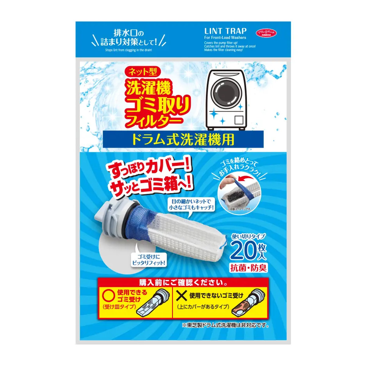 排水口の詰まり対策!ゴミを絡めとってお手入れラクラク!ドラム式洗濯機専用のゴミ取りフィルター用ネットです。目の細かいネットで小さなゴミもキャッチ。抗菌・防臭加工。