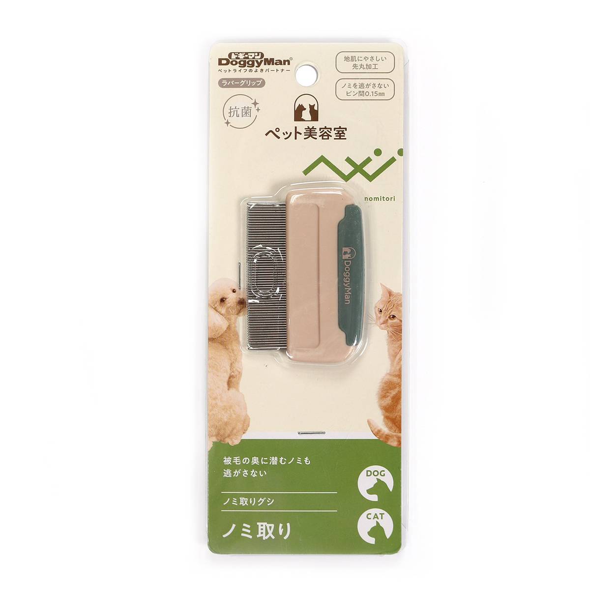 ・ピン間を細かくすることで小さなノミも逃がさず、しっかりすき取る。耳の裏側や足の付け根などもすき取りやすい。コンパクトサイズ。