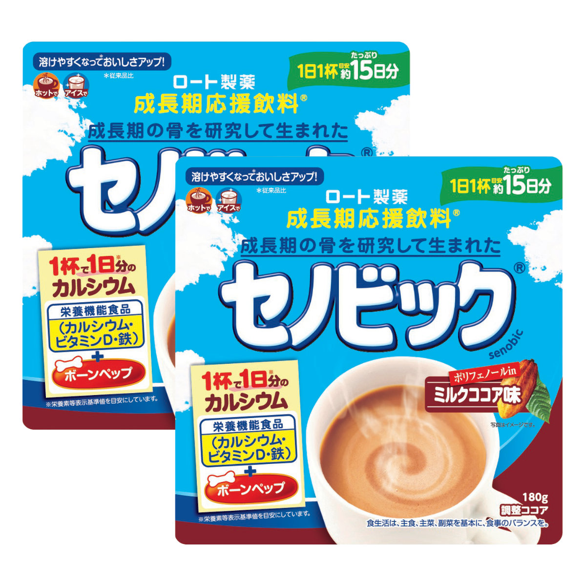 [セット]ロート製薬 セノビック ミルクココア味 15日分 180g×2個[栄養機能食品][成長期応援飲料 鉄分 ココア 子供 成長][メール便送料無料]