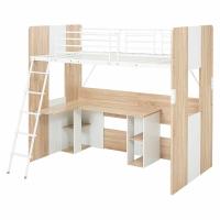 天板が広々使えるL字型のデスクが一体となったロフトベッド。ファイルや教科書の収納もできるサイドシェルフ付き。