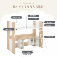 天板が広々使えるL字型のデスクが一体となったロフトベッド。ファイルや教科書の収納もできるサイドシェルフ付き。