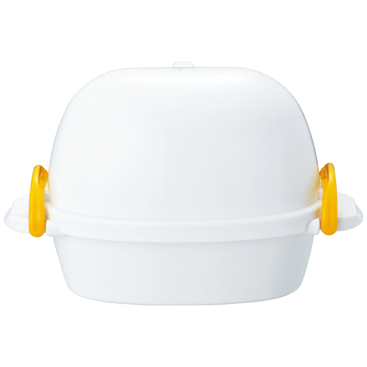 「レンジでらくチン!ゆでたまご」なら、固ゆでも半熟も思いのままに、安全に作ることができます。コンパクトな2個用タイプ。