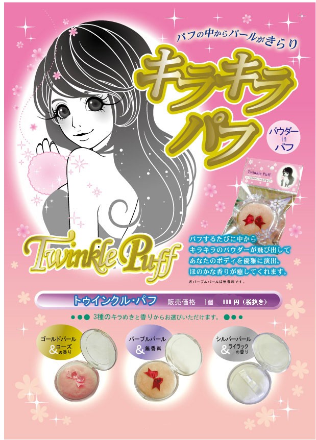 パフをするたびに中からキラキラのパウダーが飛び出してあなたのボディを優雅に演出。ほのかな香りが癒してくれます。