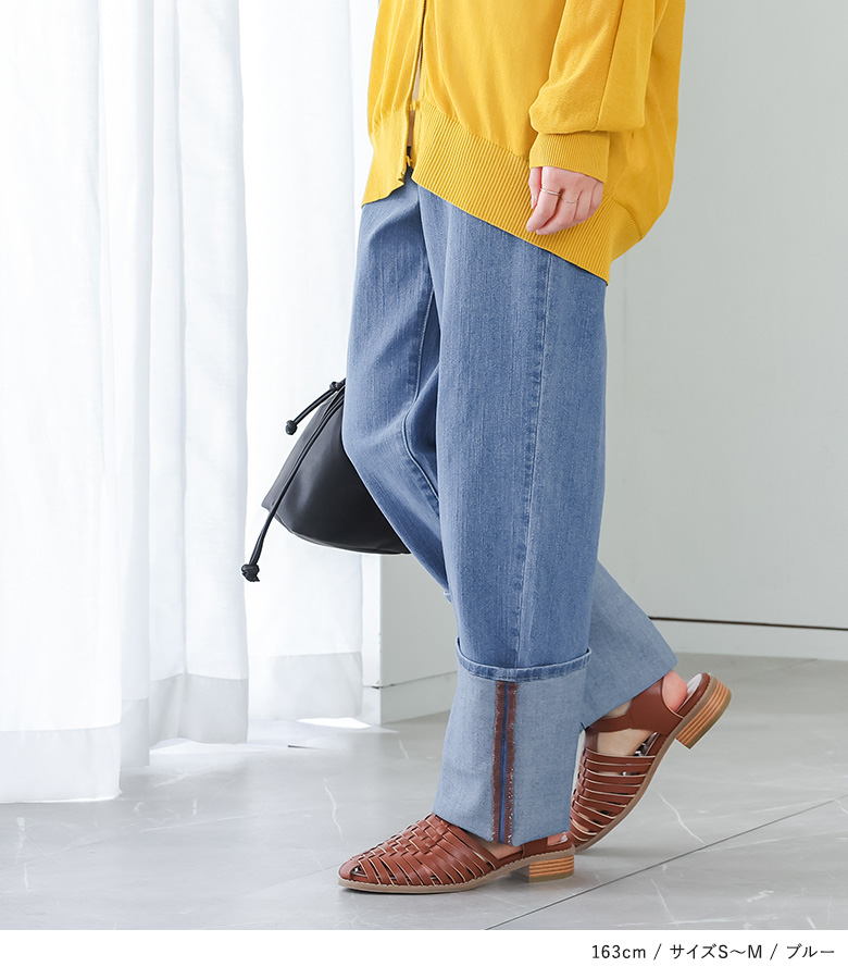 | staff:M/164cm B84 W72 H95.5 【普段着用】 Tops:M/L Bottoms: M/L | 【S〜M】 着丈(ウエスト穿き):かかと上3cm位 ウエスト:ややゆったり ヒップ:ジャスト 太もも周り:ジャスト 全体:スッキリ ヒップ、太ももジャストサイズですが窮屈感はなく穿くことができました。 【L〜LL】 着丈(ウエスト穿き):かかと上1cm位 ウエスト:ゆったり ヒップ:ややゆったり 太もも周り:ややゆったり 全体:ややゆったり 太もも、ヒップほどよいゆとり感ですがウエストが少し大きいのでベルトが必須です。 【3L】 着丈(ウエスト穿き):かかと位 ウエスト:大きい ヒップ:ゆったり 太もも周り:ゆったり 全体:大きい ウエストギリギリ止まるぐらいのサイズ感でかなり大きいです。厚手のニットをインしたりする方なら穿けるサイズ感です。 私の場合は、S〜Mを選びます。 |