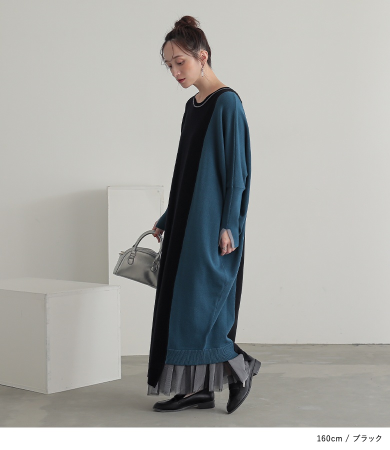 | staff:I/158cm B81 W66.5 H92 【普段着用】 Tops: M Bottoms: M | 【フリーサイズ】 袖丈:手の甲が隠れる位 着丈:ちょうどくるぶし位 腕周り:ややゆったり バスト:ゆったり ウエスト:ゆったり ヒップ:ゆったり 全体:ゆったり 配色デザインが他にないデザインで可愛いです。ゆったりシルエットで着ていて楽です。 |