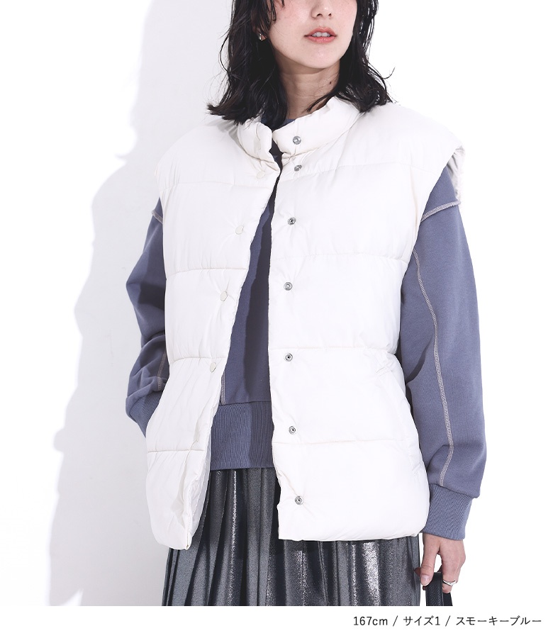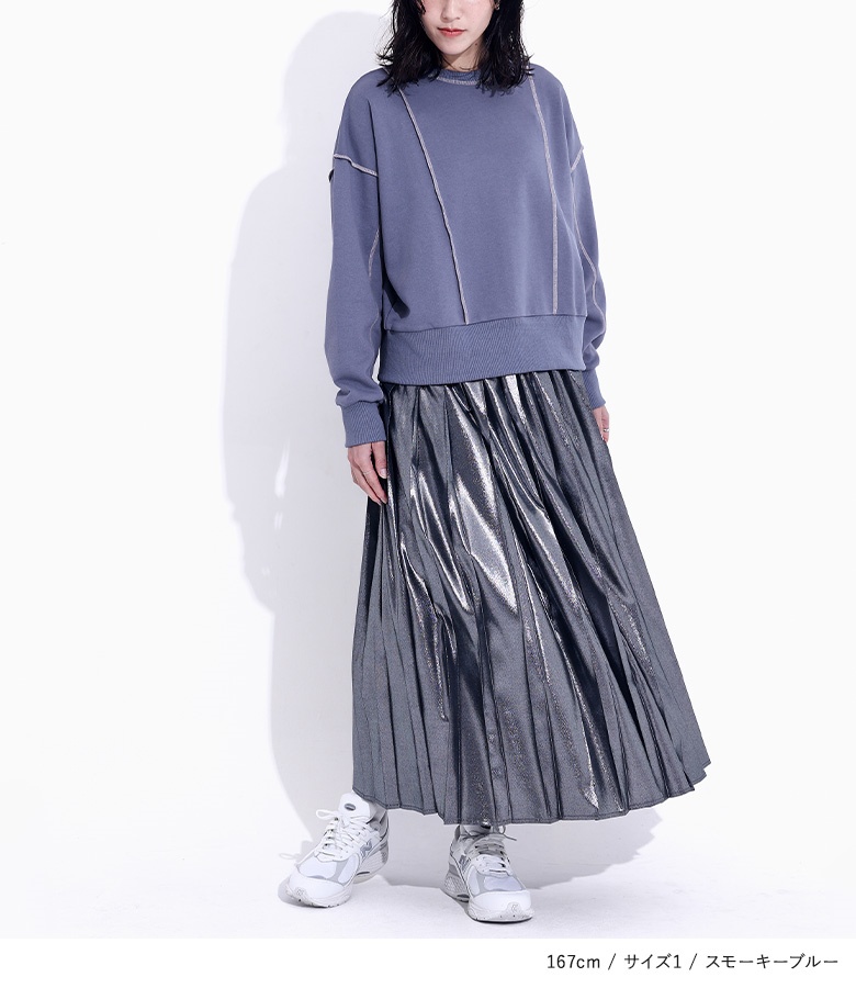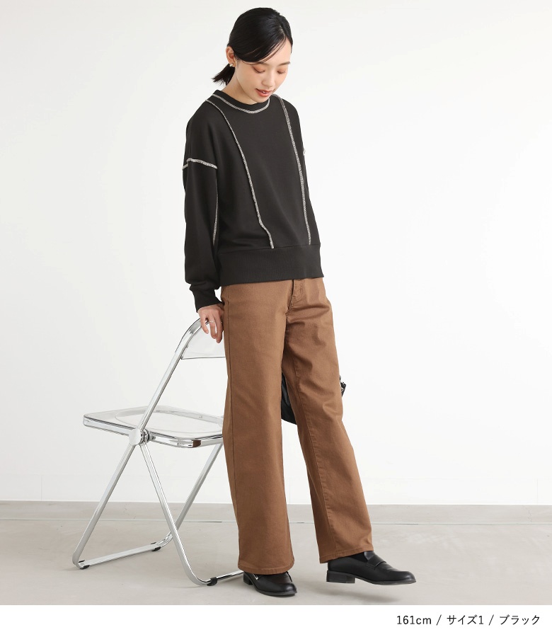 | staff:Q/159cm B78 W62 H91 【普段着用】 Tops: S/M Bottoms: S/M | 【1】 袖丈:手首位 着丈:ヒップ上3cm位 腕周り:ややゆったり バスト:ややゆったり 全体:ややゆったり 短めの丈感と配色のステッチでゆったりしつつ、すっきりと着用できました。 【2】 袖丈:手の甲が隠れる位 着丈:ヒップ真ん中位 腕周り:ゆったり バスト:ゆったり 全体:ゆったり ゆったりと楽に着用できました。 私の場合は、1を選びます。 |