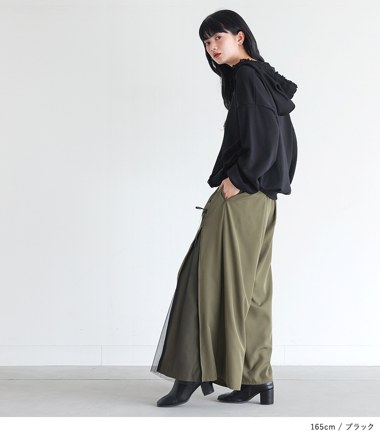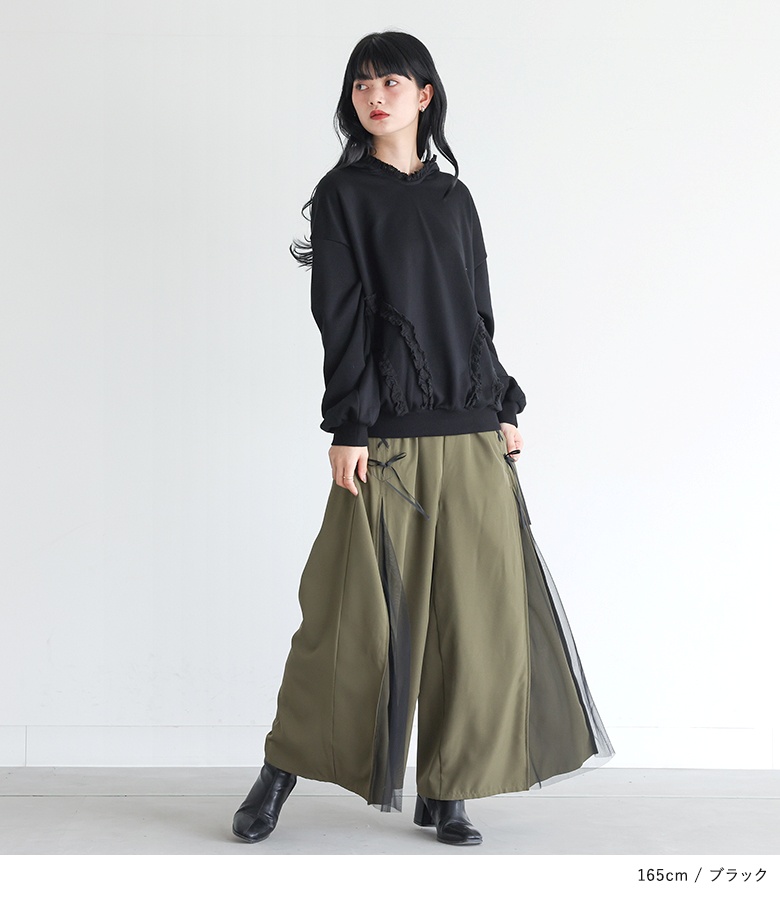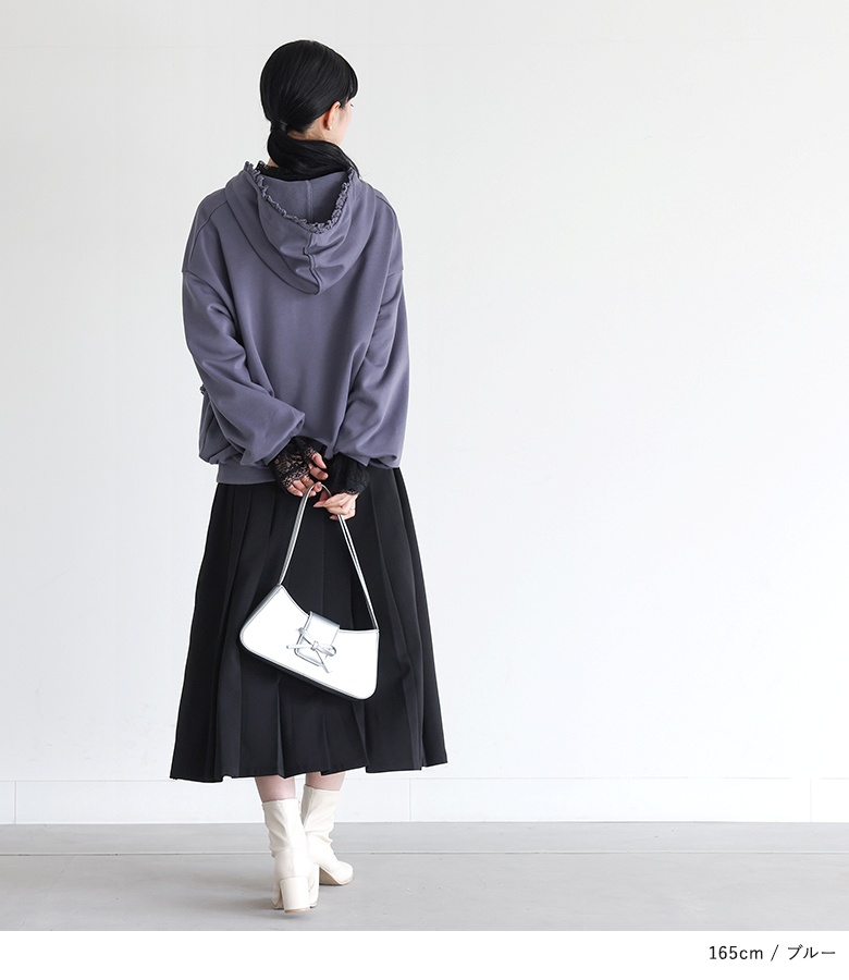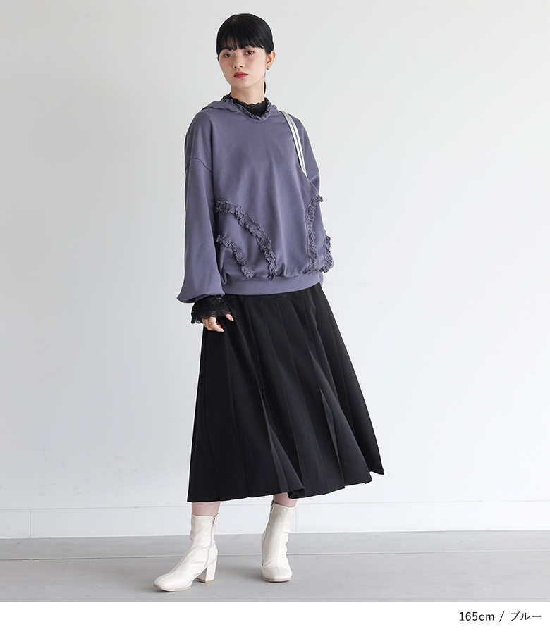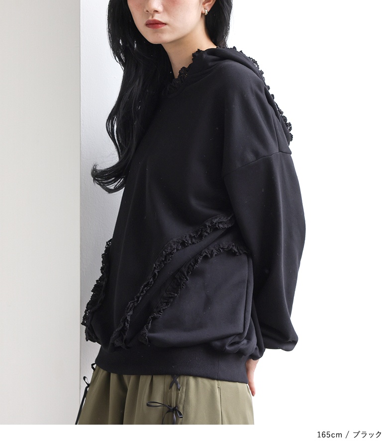 | staff:T/159cm B77 W58 H91 【普段着用】 Tops:S/M Bottoms: M/L | 【フリーサイズ】 袖丈:手の甲真ん中位 着丈:ヒップ真ん中位 腕周り:ゆったり バスト:ゆったり 全体:ゆったり フードのデザインがさりげないレースで可愛いです。 |