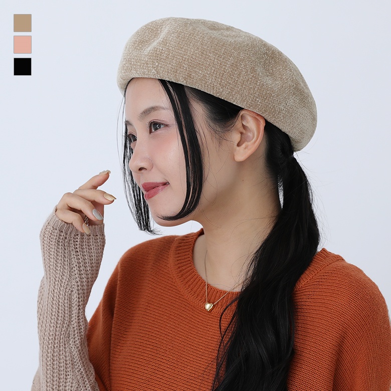 ベレー帽 レディース アクセサリー 帽子 ぼうし ファッション雑貨 小物 モールヤーン 調節可能 秋 冬 オシャレウォーカー「メール便不可」「40」