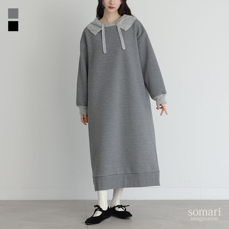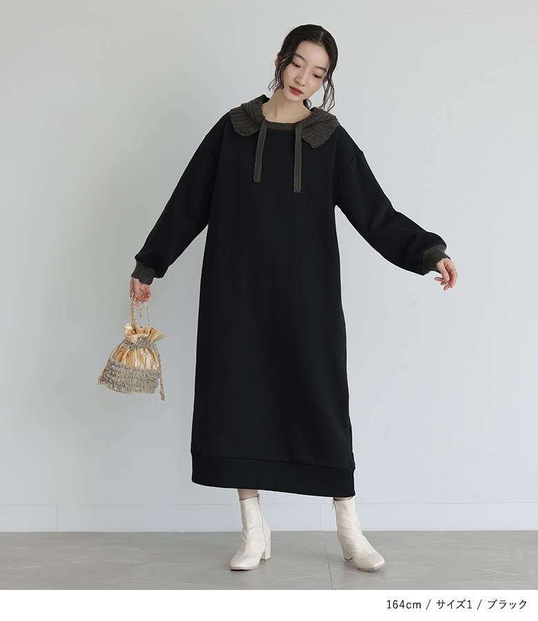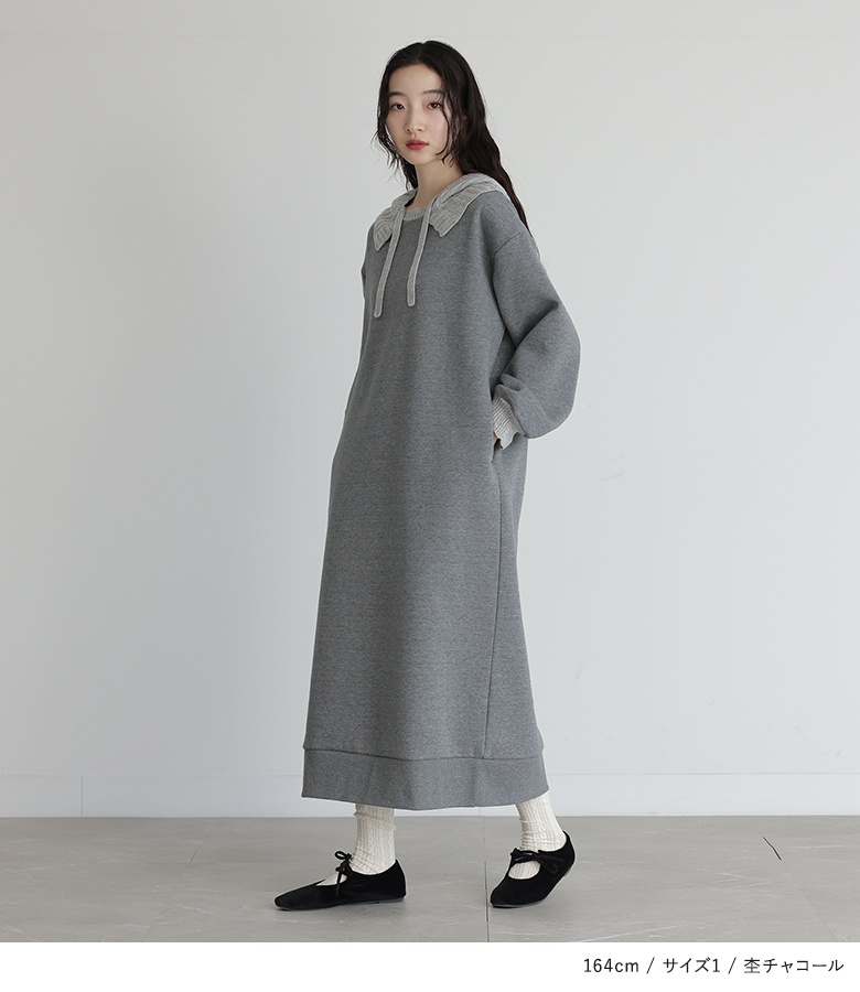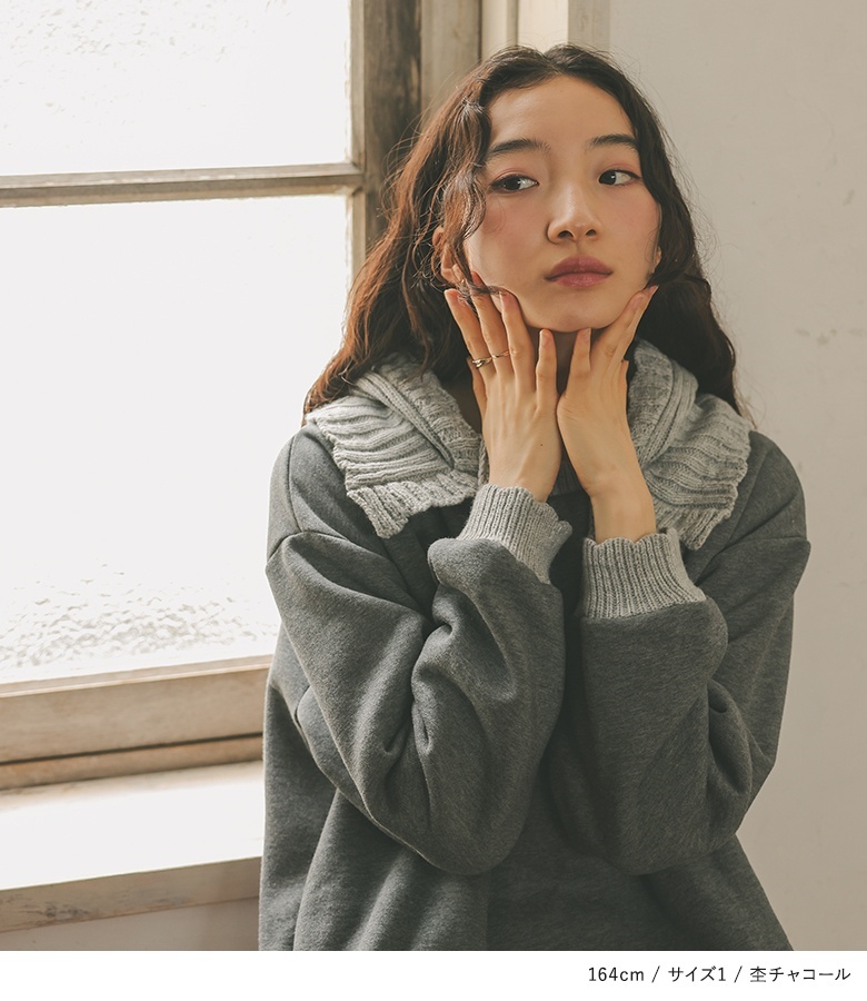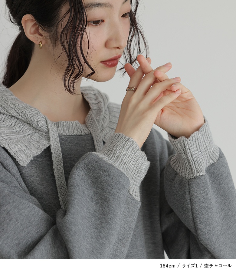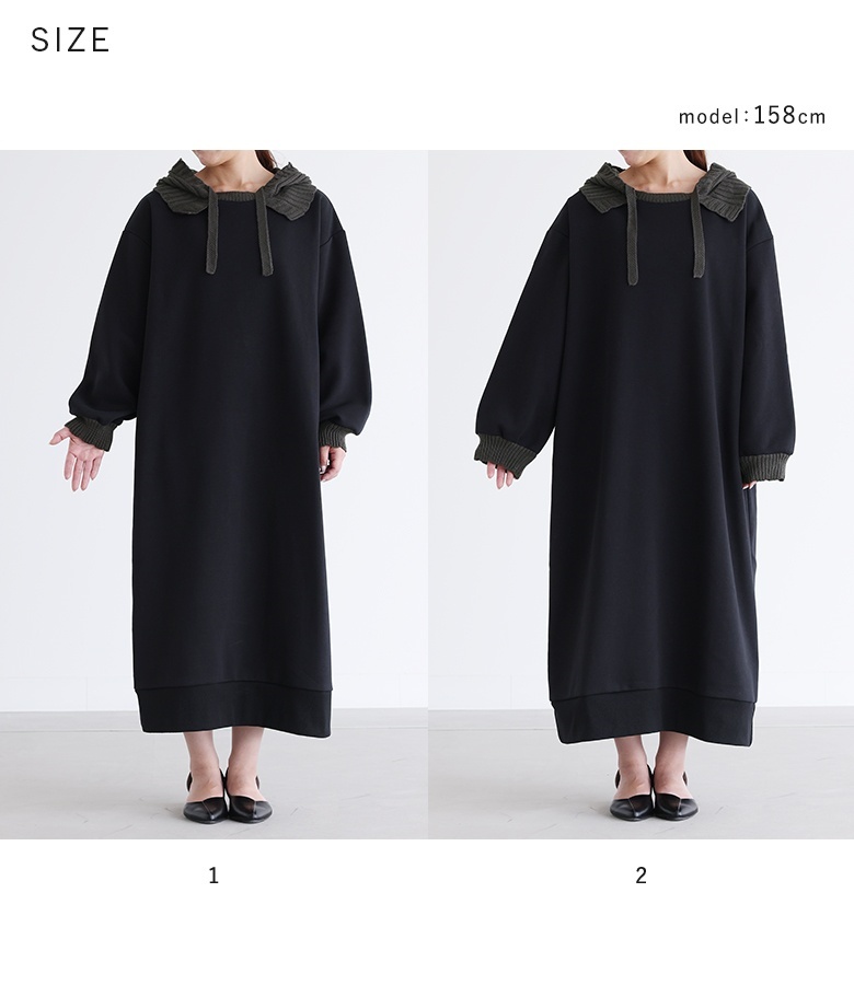 ■デザイン フードと袖口はニットで編み立てた、まるでバラクラバをドッキングさせたようなワンピース。裏起毛生地を使用した、暖かな着心地のアイテムです。Iラインシルエットですっきりとご着用いただけます。 ■コーディネート 一枚でコーディネートが決まる嬉しいアイテム。着こなしが単調になりやすいワンピースは、足元やアクセサリーなど小物で遊ぶと◎ ■素材 本体部分には柔らかな肌触りのスウェット生地を使用。裏起毛で暖かな着心地を叶えます。フードと袖口にはリブ編みのニットをドッキングさせました。 |