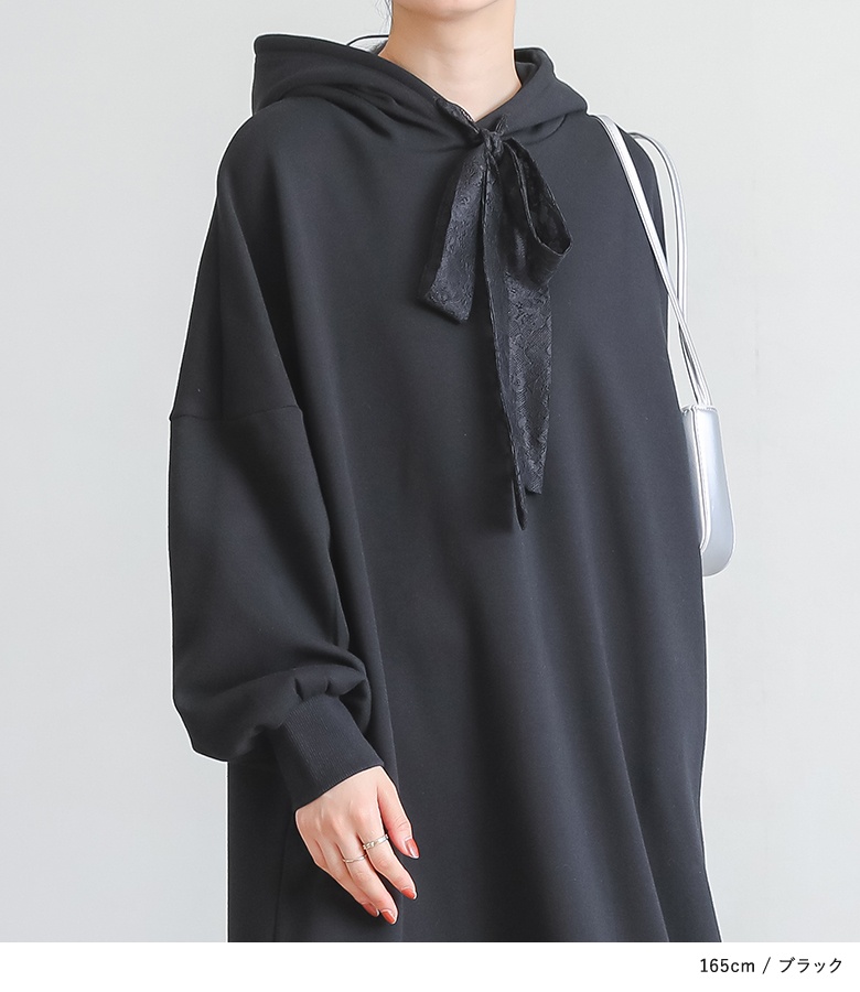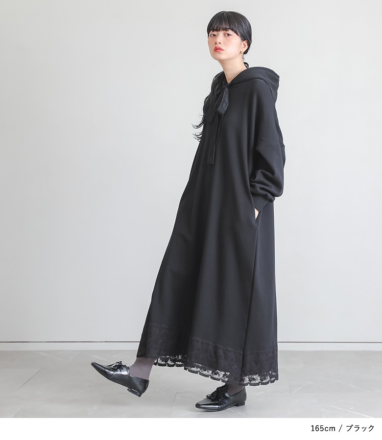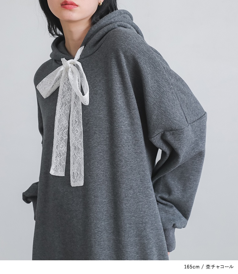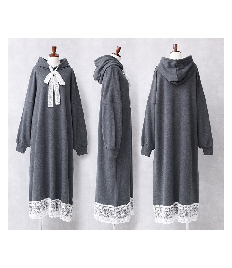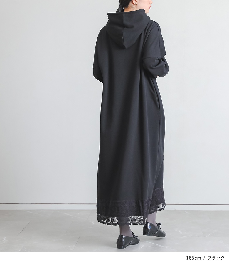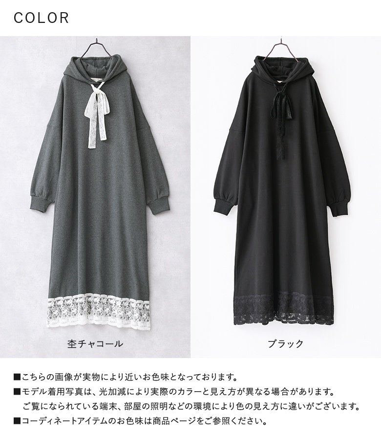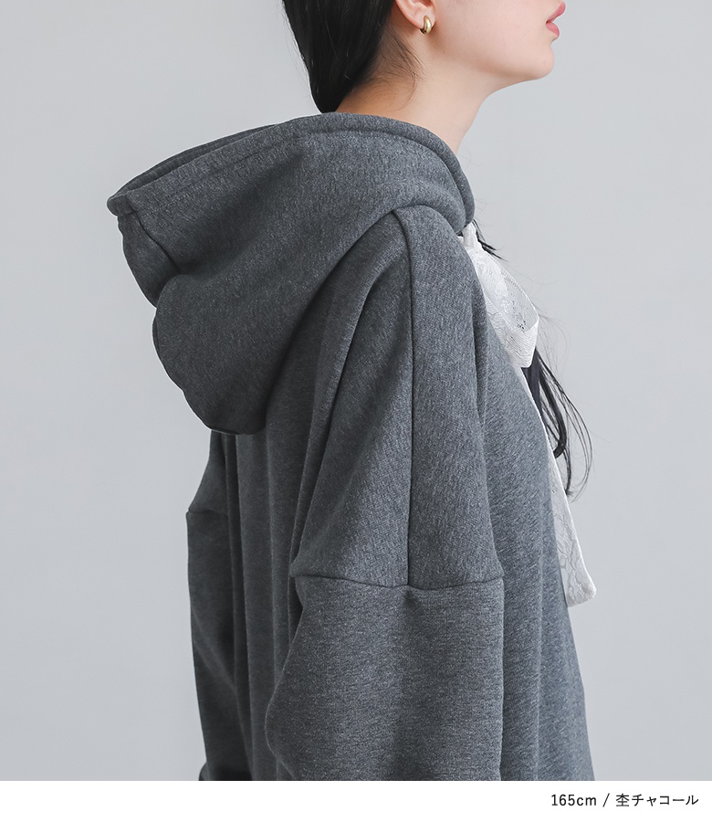 | 素材 | 本体:ポリエステル63% コットン34% ポリウレタン3% レース(裾):コットン80% ナイロン20% レース(フード紐):ポリエステル100% |
