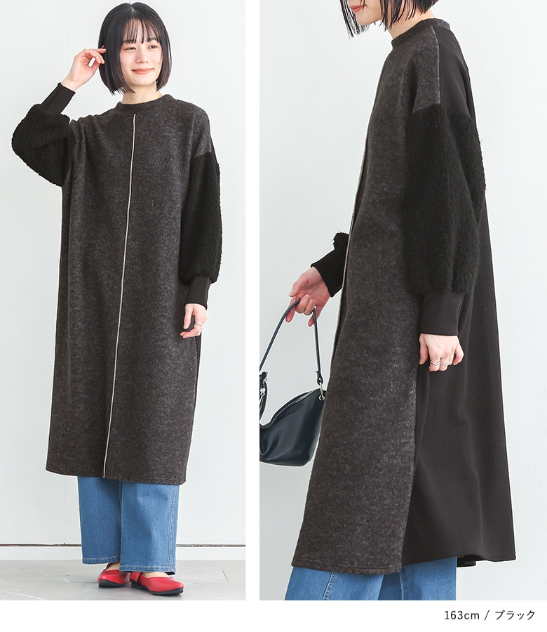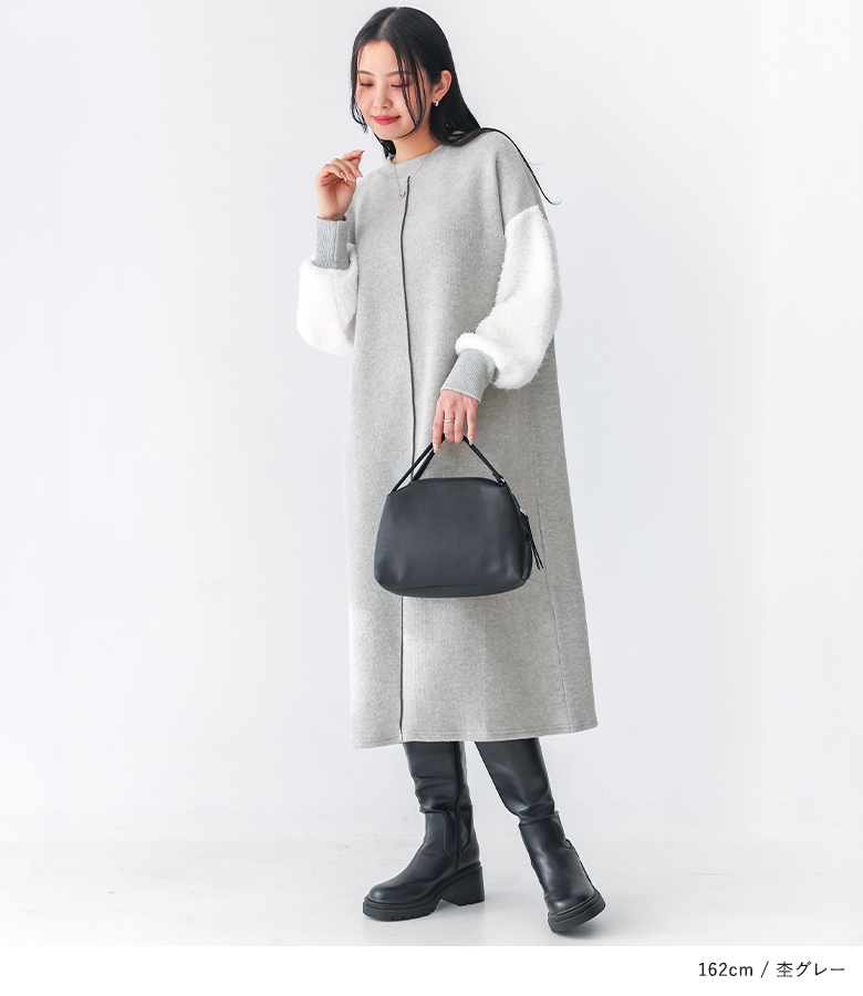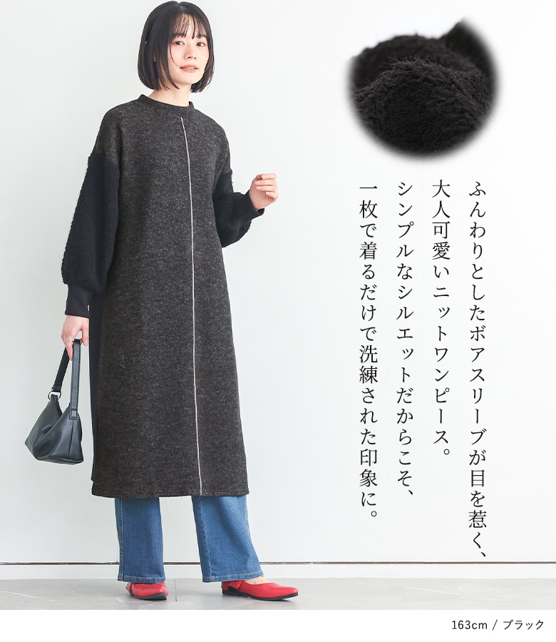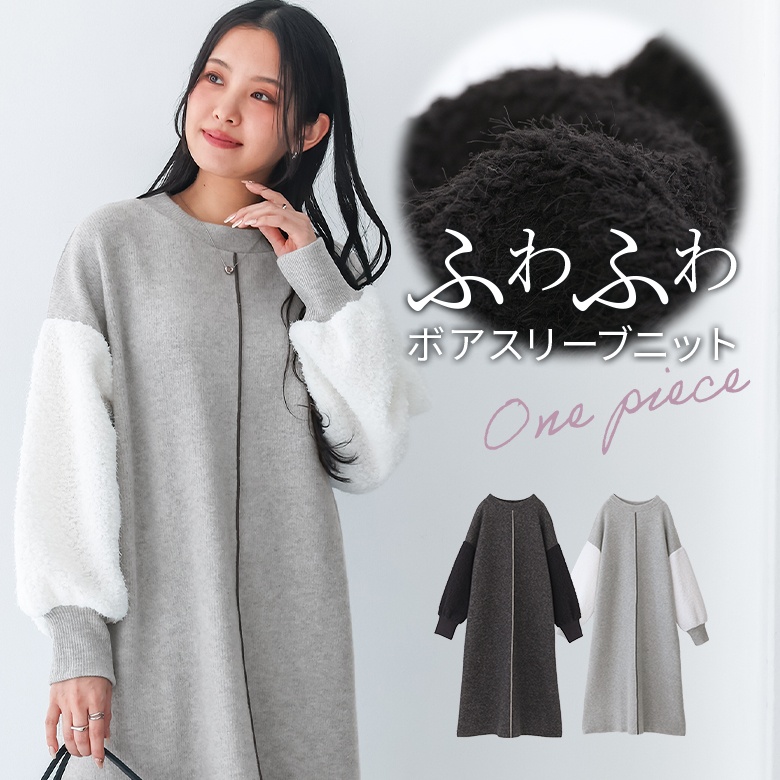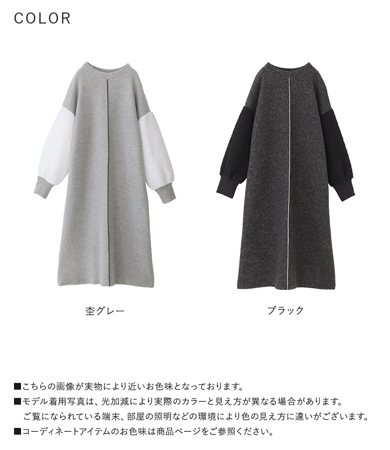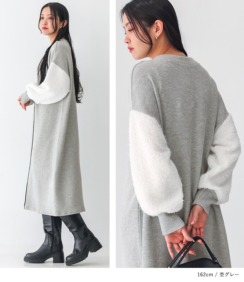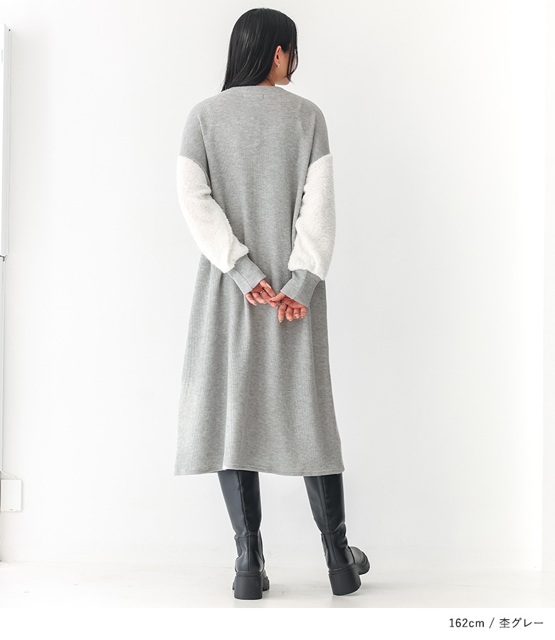 ニットワンピース レディース ドレス 長袖ワンピース ボア 異素材 配色 リブニット ドロップショルダー 秋 冬 オシャレウォーカー 【TP】 ワンピース ロングワンピース ニットワンピ クルーネック 長袖 パフスリーブ ぽわん袖 Aライン ライン 無地 ニット 異素材MIX おうちで洗える 寒さ対策 防寒対策 防寒 あったか もこもこ ふわふわ ふわもこ カジュアル シンプル ナチュラル モード キレカジ 可愛い系 大人女子 大人可愛い お洒落可愛い 大人カジュアル 上品 きれいめ ベーシック ニュアンス ラフ Sサイズ Mサイズ Lサイズ LLサイズ 3Lサイズ XLサイズ フリーサイズ ぽっちゃり 体型カバー 大きいサイズ プラスサイズ 10代 20代 30代 40代 50代 60代 低身長 高身長 女子会 オフィス 通勤 通学 お買い物 お出掛け 旅行 おしゃれ お洒落 トレンド 流行 osharewalker 灰色 杢グレー ブラック 黒[ID]14dp03i[ボアスリーブニットワンピース]
