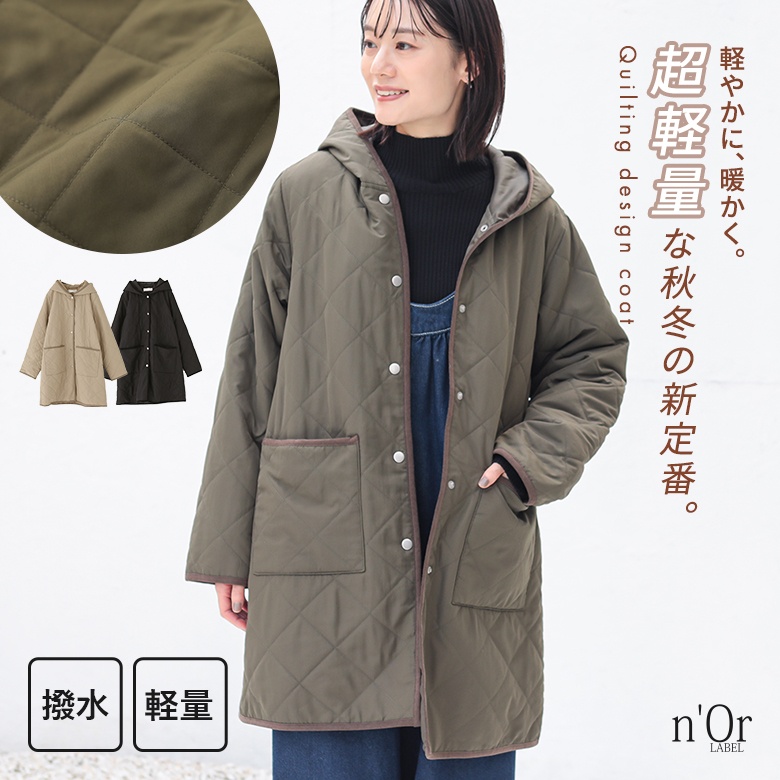コート レディース アウター キルティングコート フード付き 薄手 中綿コート 軽量 撥水 雨の日 羽織り 防寒 秋 冬 春 ロングシーズン 【TP】 フーディー ライトアウター キルティング 中綿 スプリングコート n'OrLABEL ノアールレーベル 大人女子 大人可愛い お洒落可愛い 大人カジュアル ベーシック ラフ オフィスカジュアル 上品 きれいめ ナチュラル 長袖 ミディ丈 ミドル丈 ミディアム丈 チュニック丈 無地 ポケット パイピング おうちで洗える 裏地付き 機能性 超軽量 軽い カジュアル シンプル モード キレカジ フェミニン ゆったり ゆる 楽ちん お尻が隠れる S M L LL 3L XL ぽっちゃり 体型カバー 大きいサイズ プラスサイズ 10代 20代 30代 40代 50代 60代 低身長 高身長 女子会 オフィス 通勤 通学 お買い物 お出掛け 旅行 リゾート レジャー アウトドア キャンプ おしゃれ お洒落 トレンド 流行 osharewalker オシャレウォーカー おしゃれうぉーかー ベージュ グリーン 緑 カーキ ブラック 黒 【ow_en】[ID]14oo066