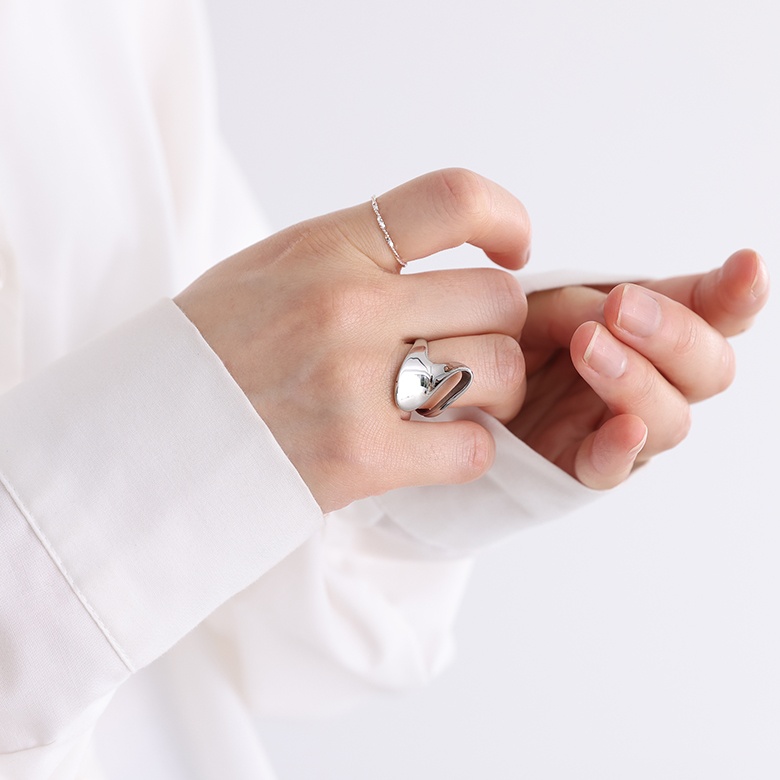 ■コーディネート 一つでも存在感のあるデザインで、コーデのアクセントになります。他のリングと複数付けして楽しむのもおすすめ。 |
