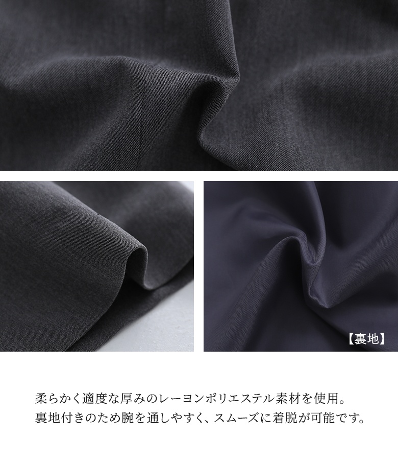| 素材 | 表地: レーヨン60% ポリエステル36% ポリウレタン4% 布・裏地:ポリエステル100% |