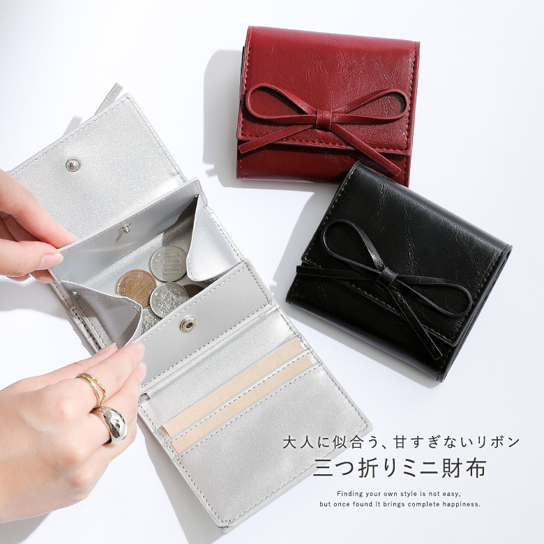 財布 レディース ミニ財布 三つ折り 小銭入れ 小さい財布 カード コンパクト ミニウォレット ボックス型 お札が折れない お札を折らない リボン コインケース おしゃれ 使いやすい かわいい ボックスコイン サイフ ウォレット ミニサイフ 小さい 小さめ ミニ 小 ファッション雑貨 無地 カード入れ お札入れ 小銭 お札 取り出しやすい 小銭が見やすい 合皮 合成皮革 フェイクレザー シンプル お買い物 カジュアル お出掛け おでかけ 通勤 通学 大人女子 大人可愛い お洒落可愛い きれいめ 収納力 小さいバッグ 春夏秋冬 オールシーズン 差し色 天赦日 一粒万倍日 寅の日 母の日 レッド 赤 シルバー 銀 ブラック 黒 プチプラ 【TP】 プレゼント 贈り物 ギフト お祝い ライフスタイル雑貨 オフィス 旅行 リゾート レジャー マットシルバー ガーリー フェミニン[ID]25gm09t