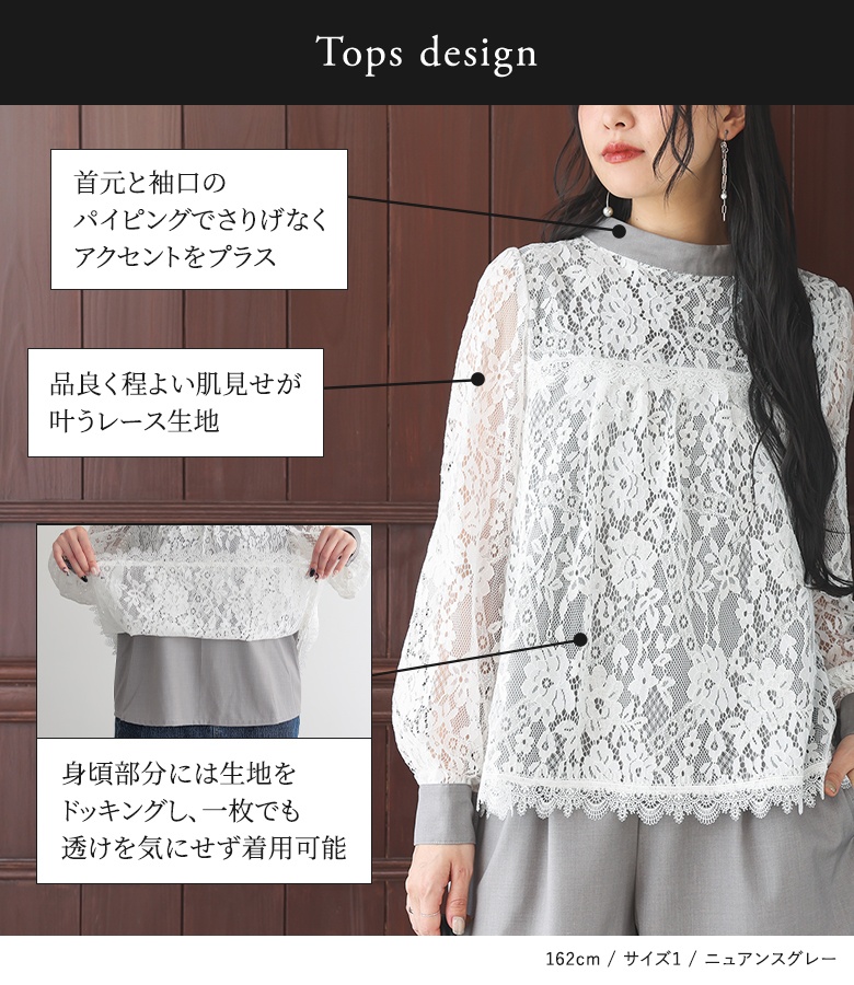 | 素材 | 本体:ポリエステル69% レーヨン31% 裏地:ポリエステル98% コットン2% レース:ナイロン63% コットン16% レーヨン17% 再生繊維(セルロース)4% レーステープ:ポリエステル100% |