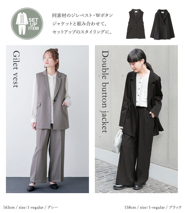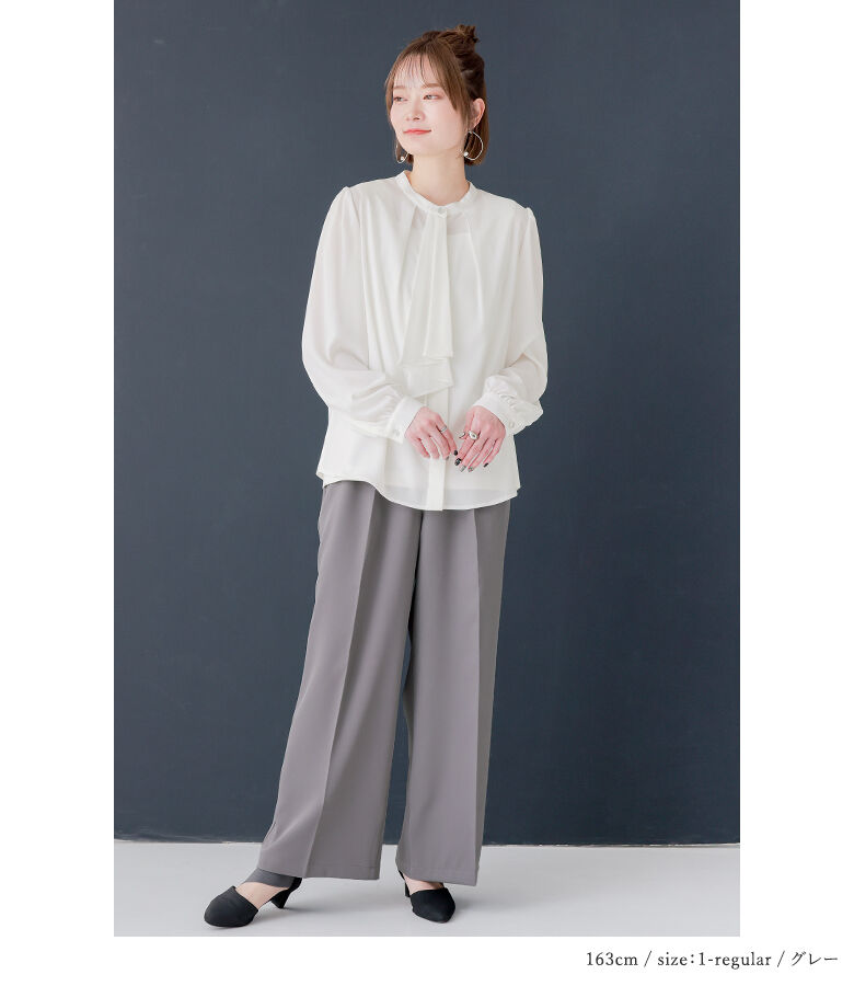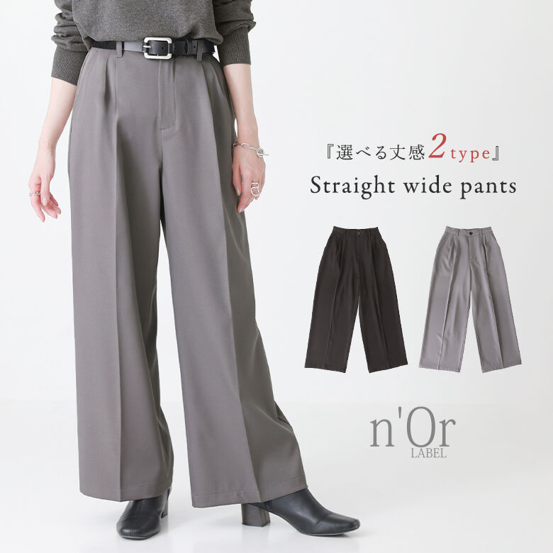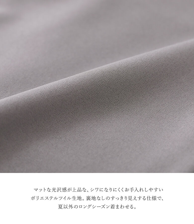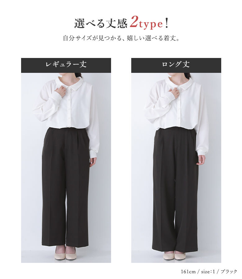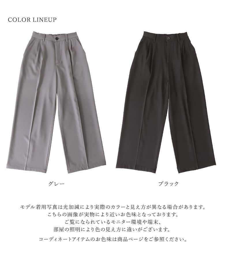 ■デザイン 選べる丈感2type! ストレートシルエットがキレイなワイドパンツ。 カジュアルコーデだけでなく、きちんと見えも叶えてくれる万能アイテム。タック入りでゆるっと着用&センタープレスで脚長効果も◎ 同素材のアイテムを合わせれば、大人のセットアップスタイルが完成します。 ■素材 マットな光沢感が上品な、シワになりにくくお手入れしやすいポリエステルツイル生地を使用。裏地なしのすっきり見えする仕様で、夏以外のロングシーズン着回せます。 |