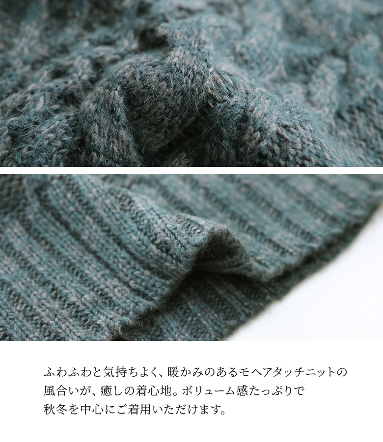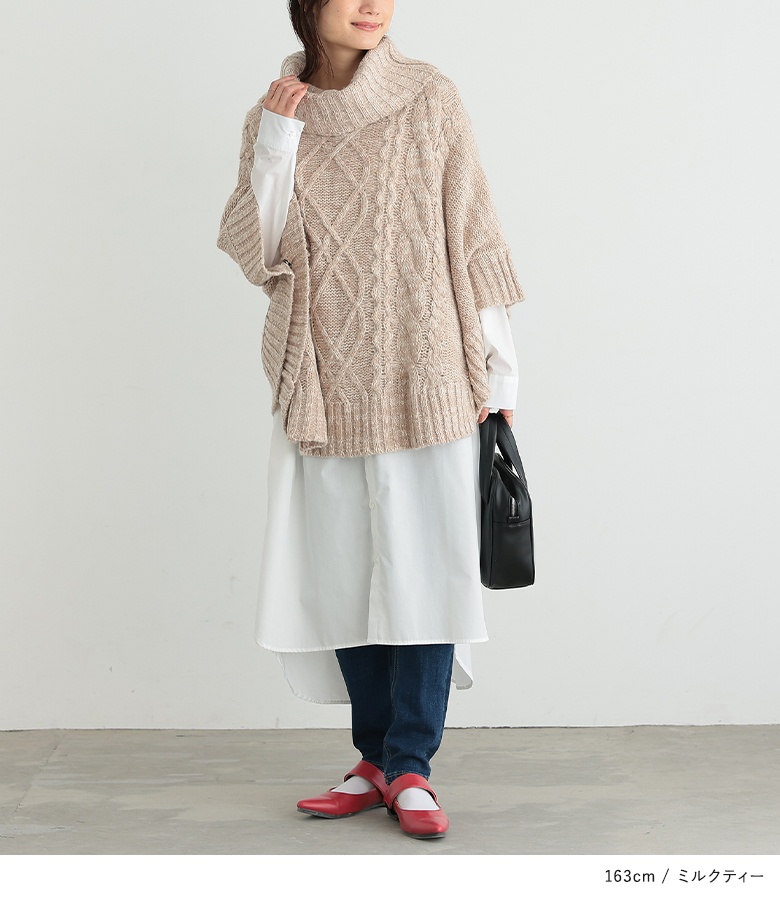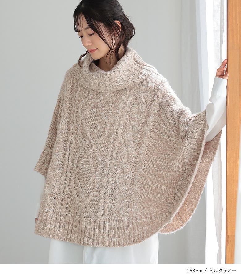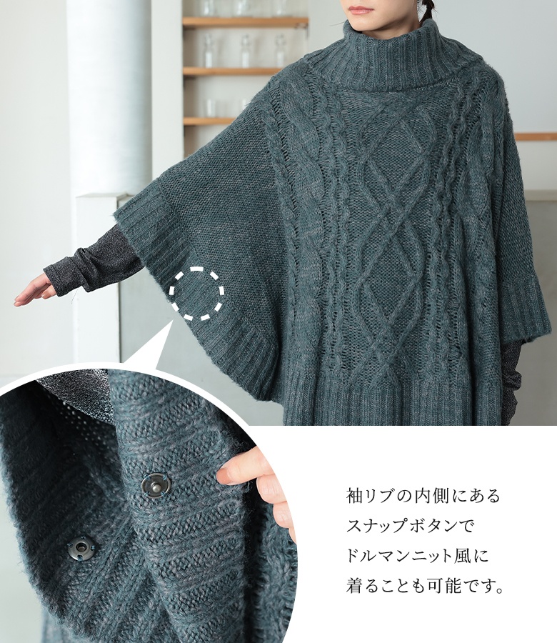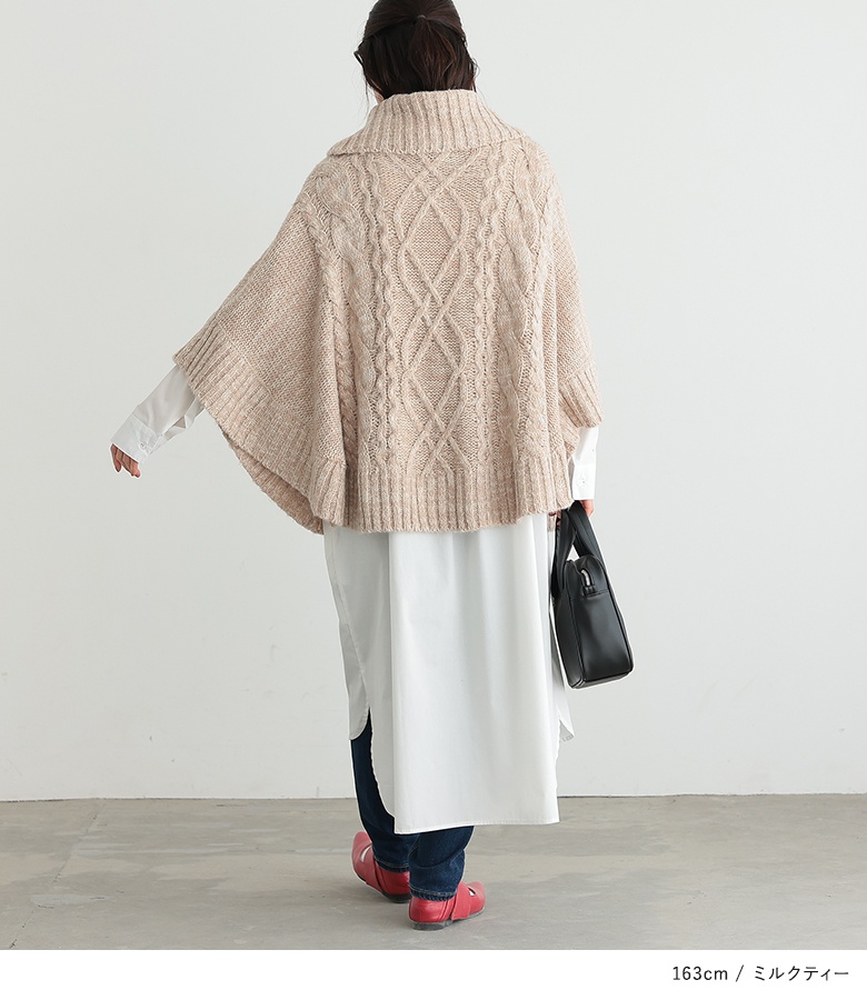 | 『お洒落な褒められスタイル、完成。』 暖かみのあるモヘヤタッチニットの風合い溢れる、ケーブル編みニットポンチョ。 首元まで包み込んでくれる、ふわふわと柔らかな癒しの肌ざわりをぜひ体験してください♪ 袖の内側にあるスナップボタンを留めればドルマンニットとしても着られるから、コーデに合わせたアレンジも楽しめる。 ミックス糸の色合いが、ゆるっとしたシルエットにこなれ感をプラスします。 今、好きな物、興味あることを自由な発想で表現できる≪ n'OrLABEL ≫。 「実用性と機能性、そして遊び感覚」、多面性を楽しめるピュアでモードなデザインライン。 飾らないざっくり感を楽しむ≪n'OrLABEL≫モヘヤケーブルニットポンチョです。 |