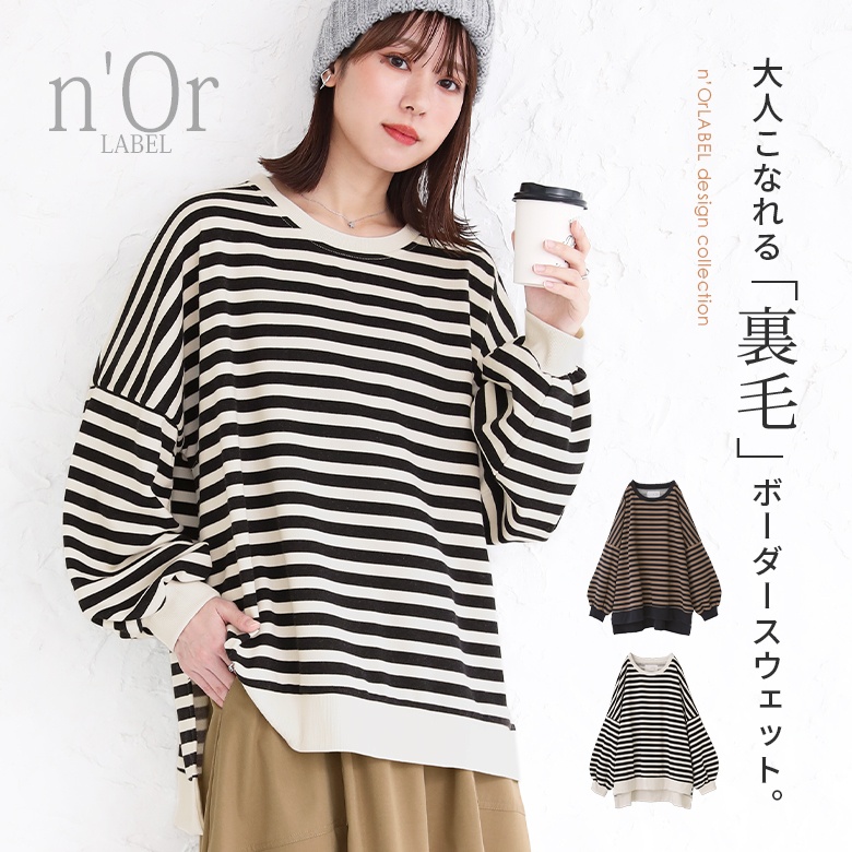 | 『周りと差のつく印象に仕立ててくれる。』 大人っぽいボーダーデザインとボリュームのある ぽわん袖。ラフでお洒落な優秀、大人こなれる裏毛ボーダースウェット。 さらっとラフに着られて、肌触りの良いコットン混の裏毛スウェット生地。襟ぐり・袖口・裾はリブ生地切り替えでメリハリのある印象に。 程よい厚みでこれからの季節にぴったり。ゆるっとシルエットでお洒落上手に見せる絶妙バランス。 おしりまですっぽり隠れる後ろ長め丈だけど、サイドスリットで抜け感も譲らない絶品。 今、好きな物、興味あることを自由な発想で表現できる≪ n'OrLABEL ≫。 「実用性と機能性、そして遊び感覚」、多面性を楽しめるピュアでモードなデザインライン。 n'OrLABEL裏毛ボーダースウェット。 |