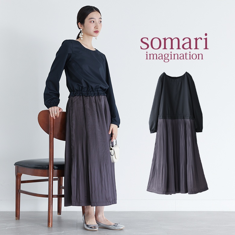 | 『心惹かれるお洒落な彼女。』 異素材使いの洗練された存在感を放つ、サテンプリーツワンピース♪ 裾に向かって広がるランダム消しプリーツで上品なお洒落印象を醸し出す。後ろ姿までお洒落なバックボタンデザインだから、差のつくお洒落を叶えてくれる。ウエストリボンでブラウジングして印象チェンジも簡単です。 上質感のあるスーツ生地に、さらりと柔らかい微光沢のサテン生地を使用したプリーツをドッキング。同素材のジャケットを合わせれば、フォーマルもカジュアルな装いにも活躍するセットアップが完成♪さらに、選べるM〜3Lサイズ展開が嬉しいポイントです。 「可愛さ想像以上」を体現する≪ somari imagination ≫。 洗練された大人の女性らしさとどこか懐かしい雰囲気を醸し出すデザインライン。 洗練された女性らしさが光る≪somari imagination≫サテンプリーツワンピースです。 |