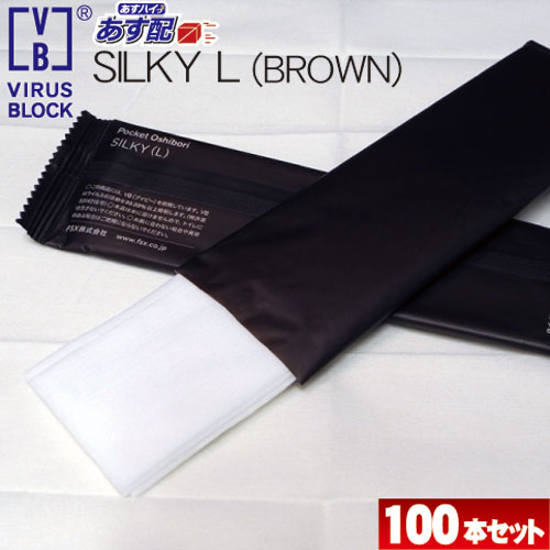 お試し100本セット VB SILKYシルキー Lサイズ ブラウン 平型 抗菌 抗ウイルス 紙おしぼり あすつく対応/送料無料 業務用 使い捨ておしぼり ポケットおしぼり