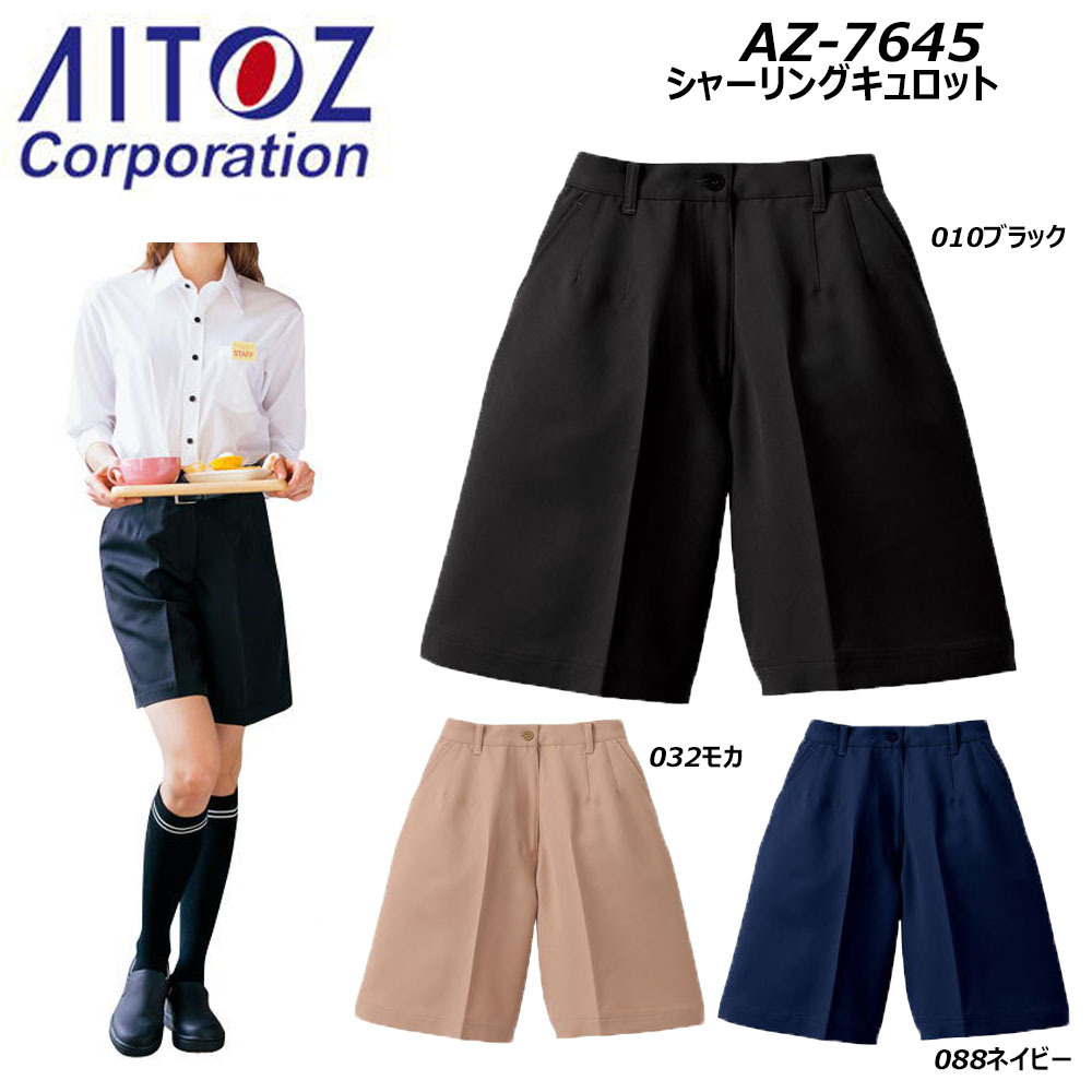 シャーリングキュロット SS〜3L キュロット パンツ スカート 撥水 ストレッチ 制電 制服 ユニフォーム オフィス 飲食 ワーク レディース