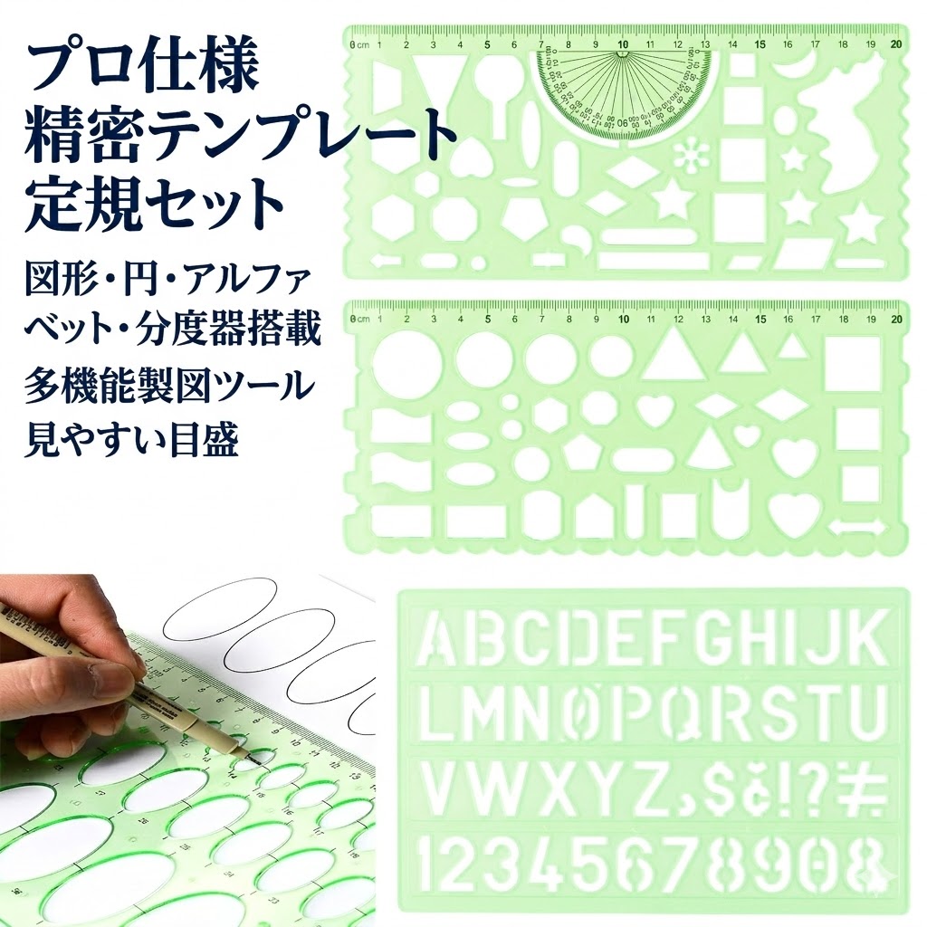 テンプレート 定規 描画 製図 図形 丸 まる 三角形 四角形 六角形 楕円 アルファベット 分度器 文房具 絵画 情報処理 プログラミング